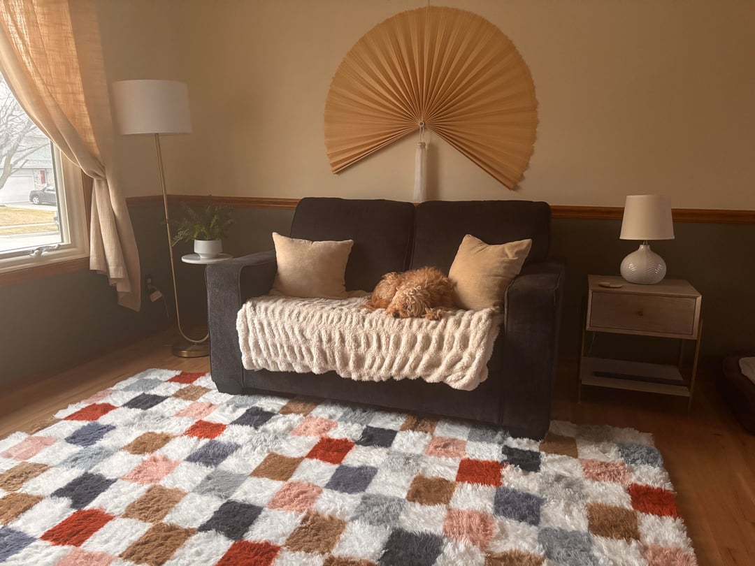 I like the checkered pillows. Those are fun, like the rug, and nicely textured too!