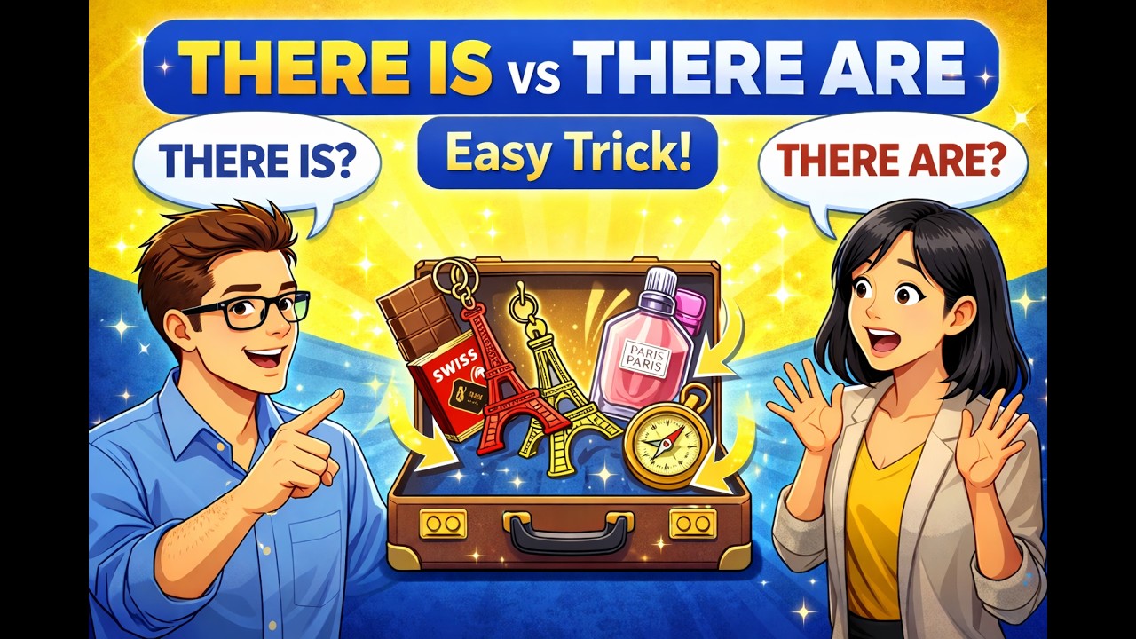 Welcome to English with Norberto! 🚀 In today’s lesson, Alex and Sam open a suitcase full of European souvenirs to help you master the use of There is and There are.