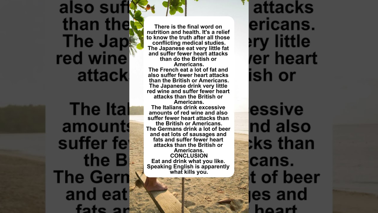 Eat and drink what you like. Speaking English is apparently what kills you.