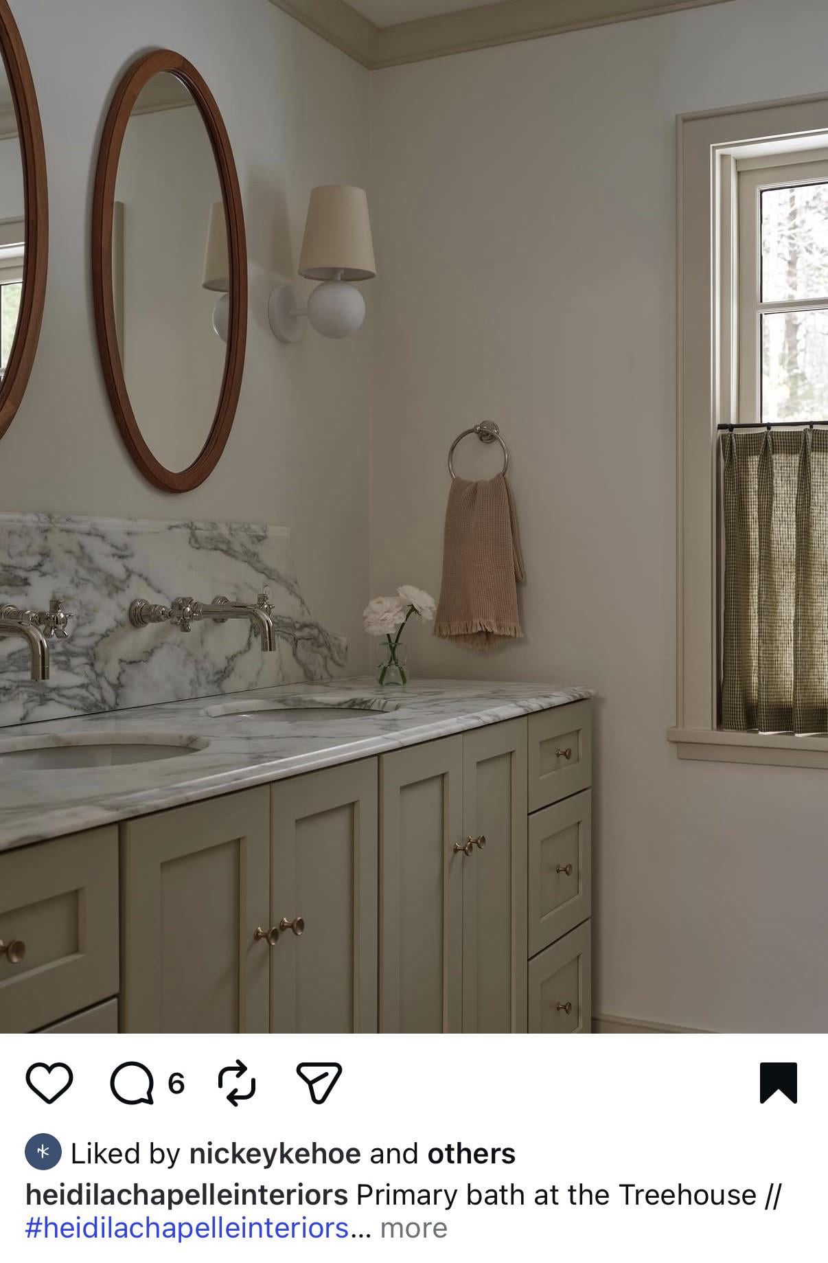 Hello! I’m trying to find a similar paint color as shown in these cabinets for my bathroom cabinets. Preferably Sherwin Williams. Was looking at Evergreen Fog, Svelte Sage, and At Ease Soldier.by Bailey-boy-1112 home and gardenhome decoratinghome decorating ideas 3 Comments Lorain1234 3 hours ago They’re definitely sage. Pick up several samples and compare. WorkOnThesisInstead 3 hours ago I like that color!You can take off a drawer front or door and Sherwin-Williams can computer match it.Or, you can pick up a buncha swatches and try to match it yourself. OrneryLavishness9666 3 hours ago The designer herself told a publication it’s Benjamin Moore Spanish Olive. Grassland is a good Sherwin Williams alternative for it.Write A CommentYou must be logged in to post a comment.
