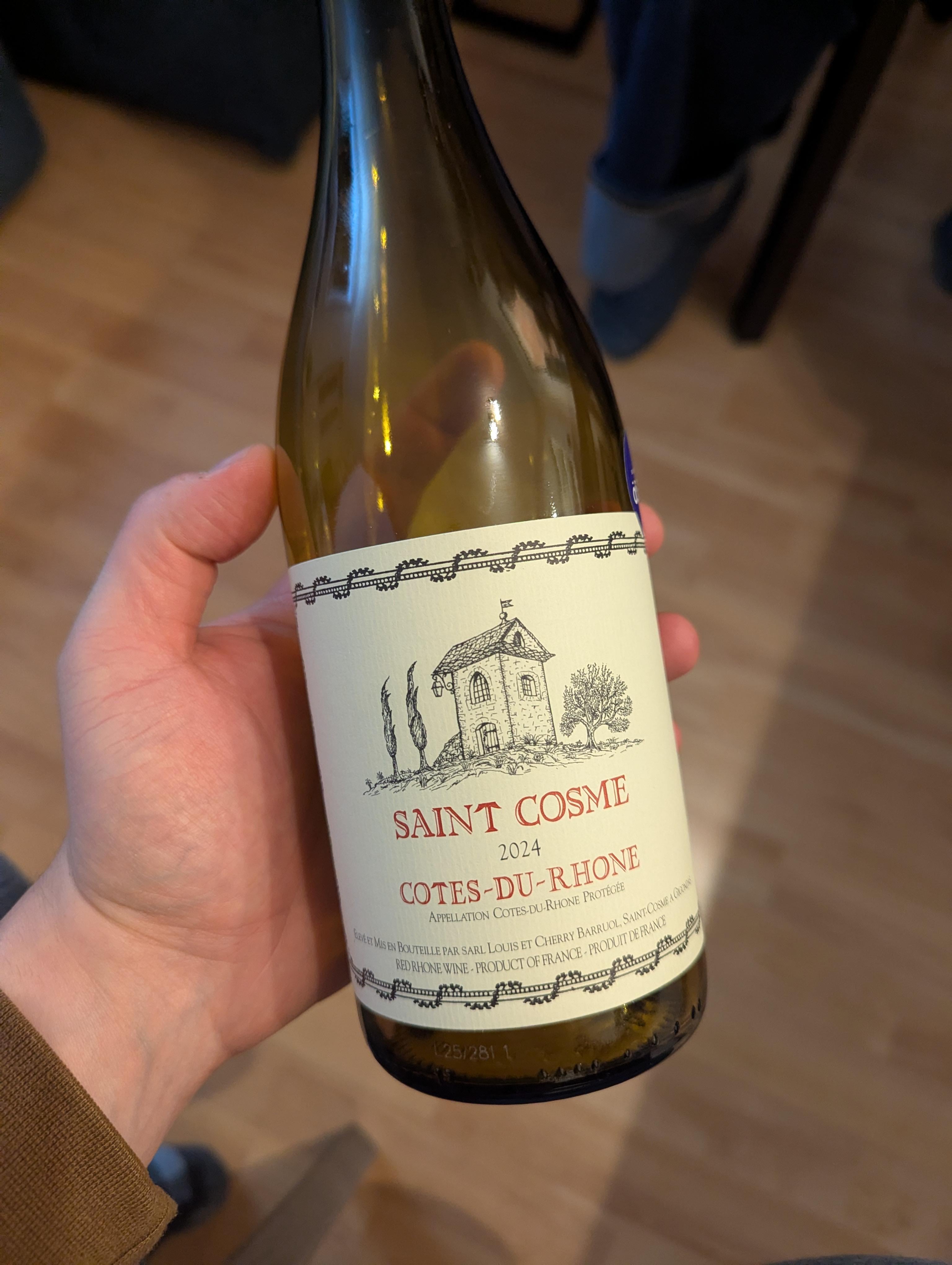 Thoroughly propelled by the serious hype seen over here these last two months, I decided to give the Saint Cosme Cotes-du-Rhone a try.
