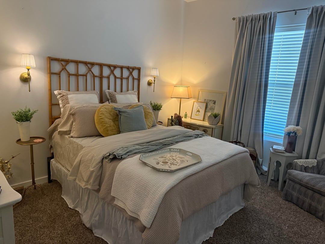 We’re in a rental, so we worked with the existing carpet and avoided any major renovations.