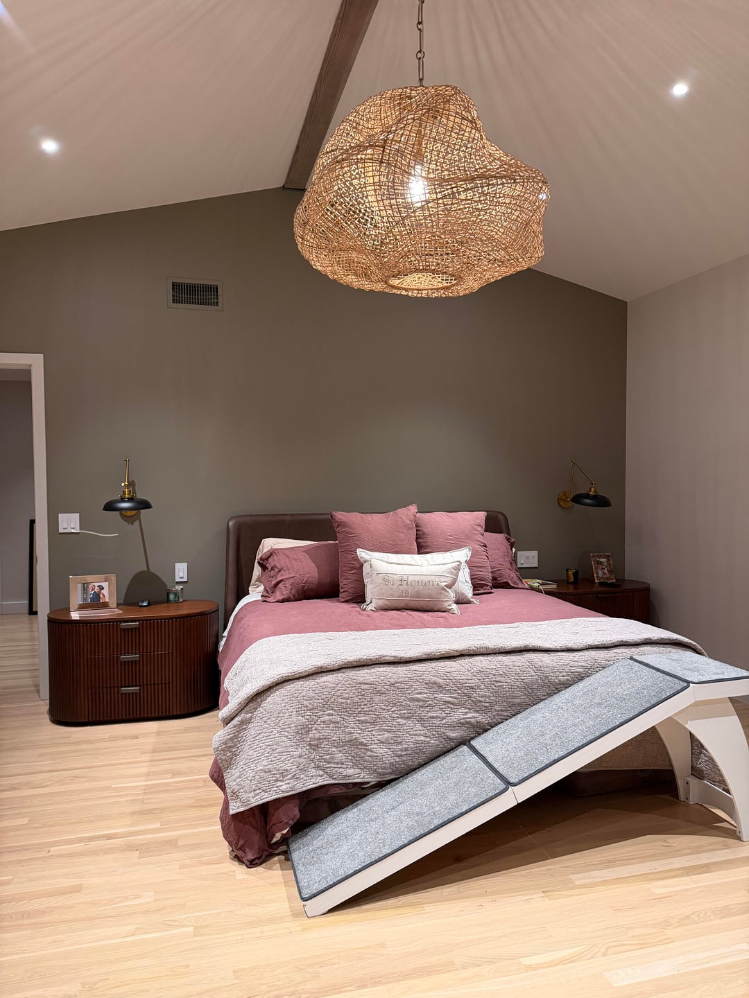 We are coastal California so I was thinking a large black and white photo over the bed of the ocean/surfers but I’m unsure. Please ignore the massive dog ramp.
