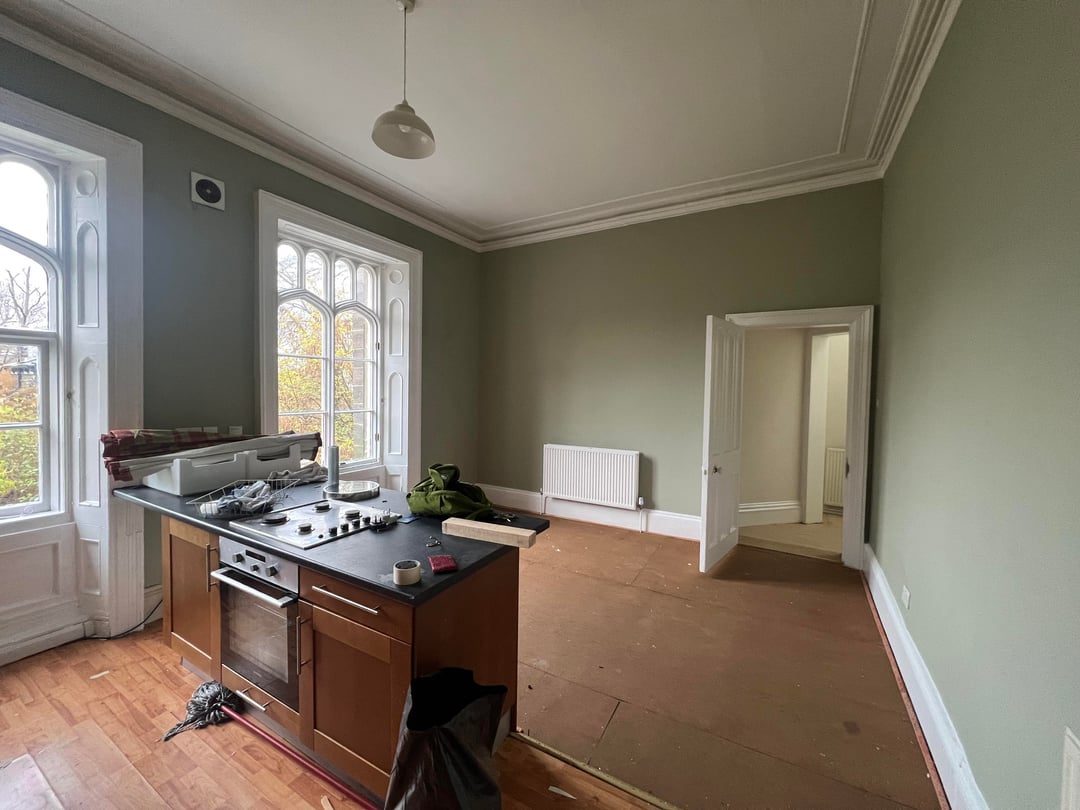 The 4th and 5th photos were taken when we visited prior to moving in, and the 6th the night we moved in. The landlord had let me choose paint colours for the walls in advance which was great, and kindly agreed to unfurnish the whole flat so I could bring in my own!