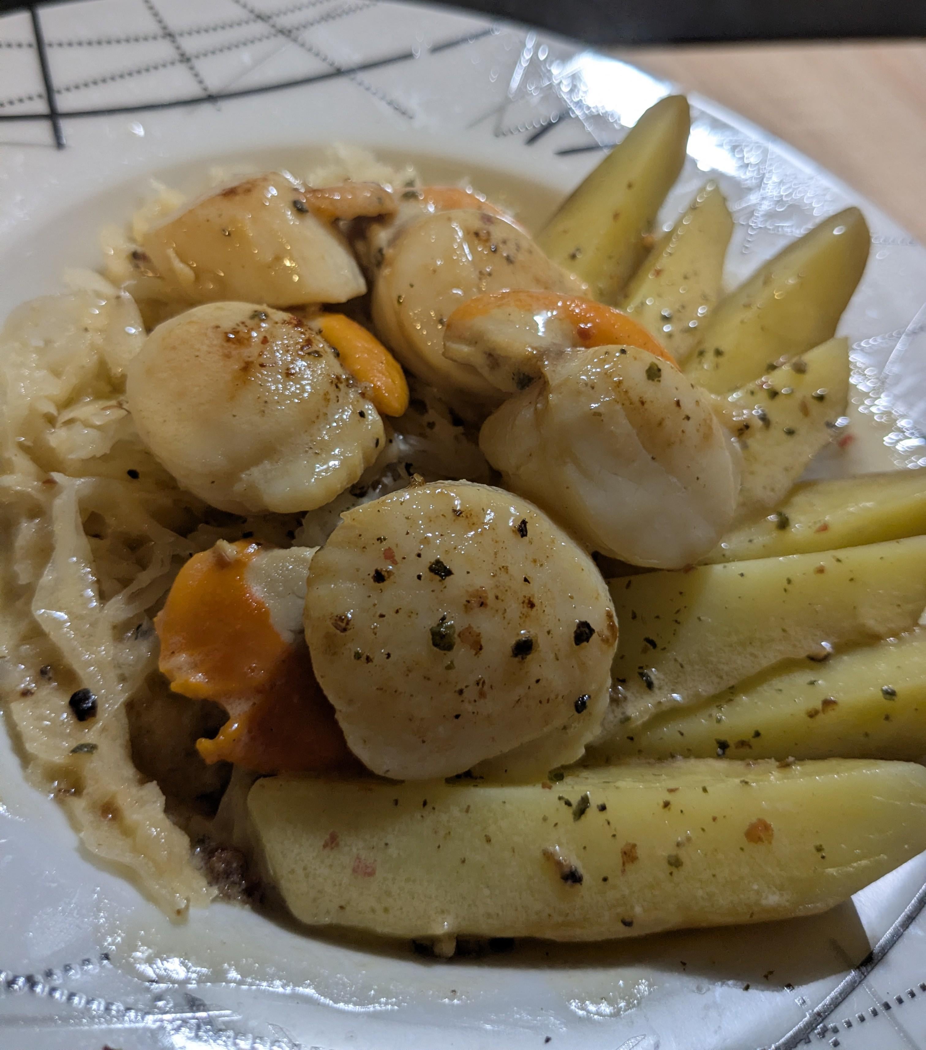 Saint-jacques snackées, avec choux cuit et pomme vapeur et sauce chablis, crème et baies concassées.by dvd76 Bonne BouffeCuisine d'ici et d'ailleurs 1 Comment Abotrax 2 hours ago merci ça donne envie,Write A CommentYou must be logged in to post a comment.