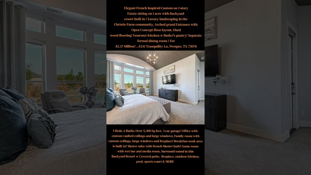 “ELEGANT FRENCH INSPIRED CUSTOM ON 1 STORY” Estate over 1 acre of Land, Private Area with a Backyard Resort Built in ! 🏰🏰🏠 Priced $2.17 Million! …. Located: 4241 Tranquility Ln, Prosper, TX 75078