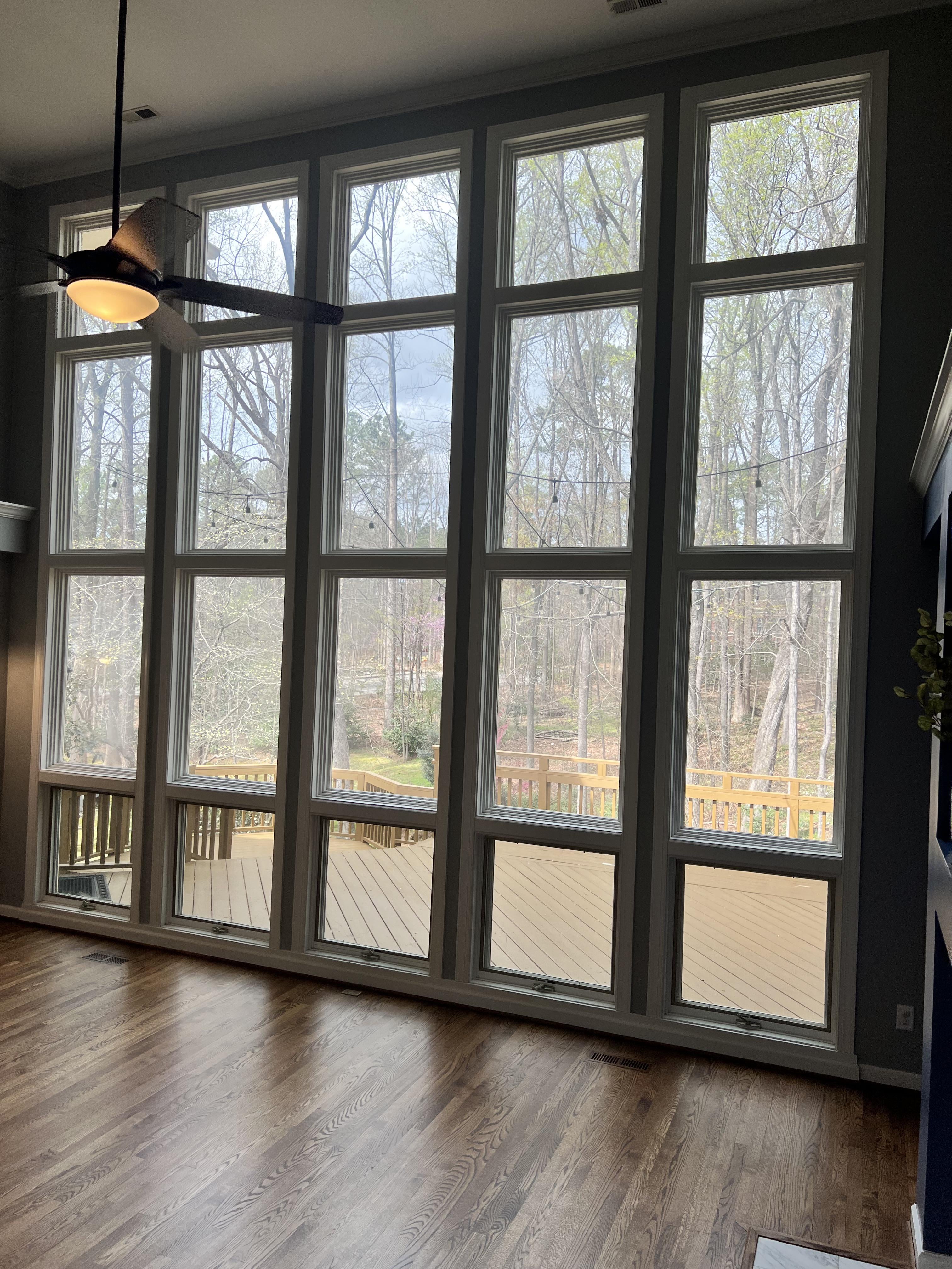 We recently bought a house with giant floor-to-ceiling windows in the great room. We’d like to install some level of privacy to the room as it backs up onto a major thoroughfare.