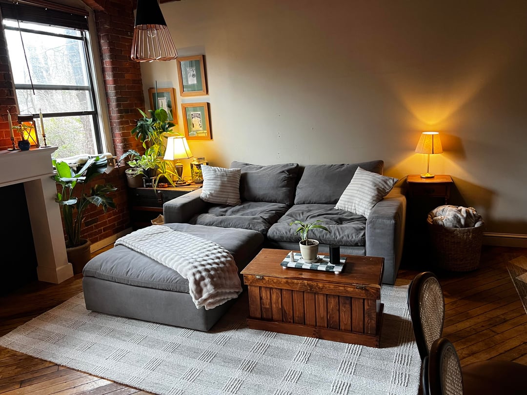 You’ll want a rounded coffee table for better flow and happier shins while getting to the couch, and either art or shelves above the couch (but between the bookcases) to get everything filled in. Once you make those changes, I think you’ll love the space!