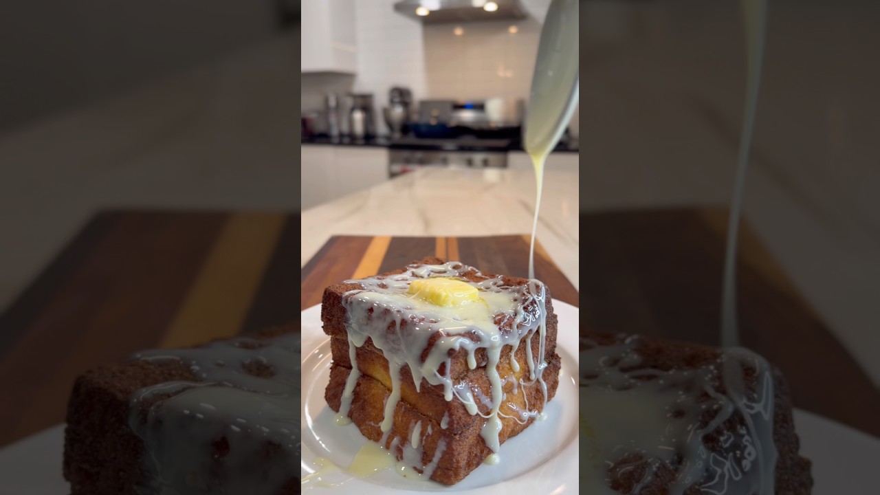 Heat oil to 315 to 320 F. Carefully deep fry the French toast, turning on all sides until golden brown. It will brown quickly, so keep it moving to prevent burning. Transfer to a plate.