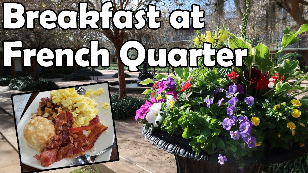 When we stay on property, we love to grab breakfast at the resort. French Quarter is our favorite place to stay, and they have a lot of options at their food court area. This is just a quick look at some of the menus and decor, as well as a quick rundown of our breakfast.