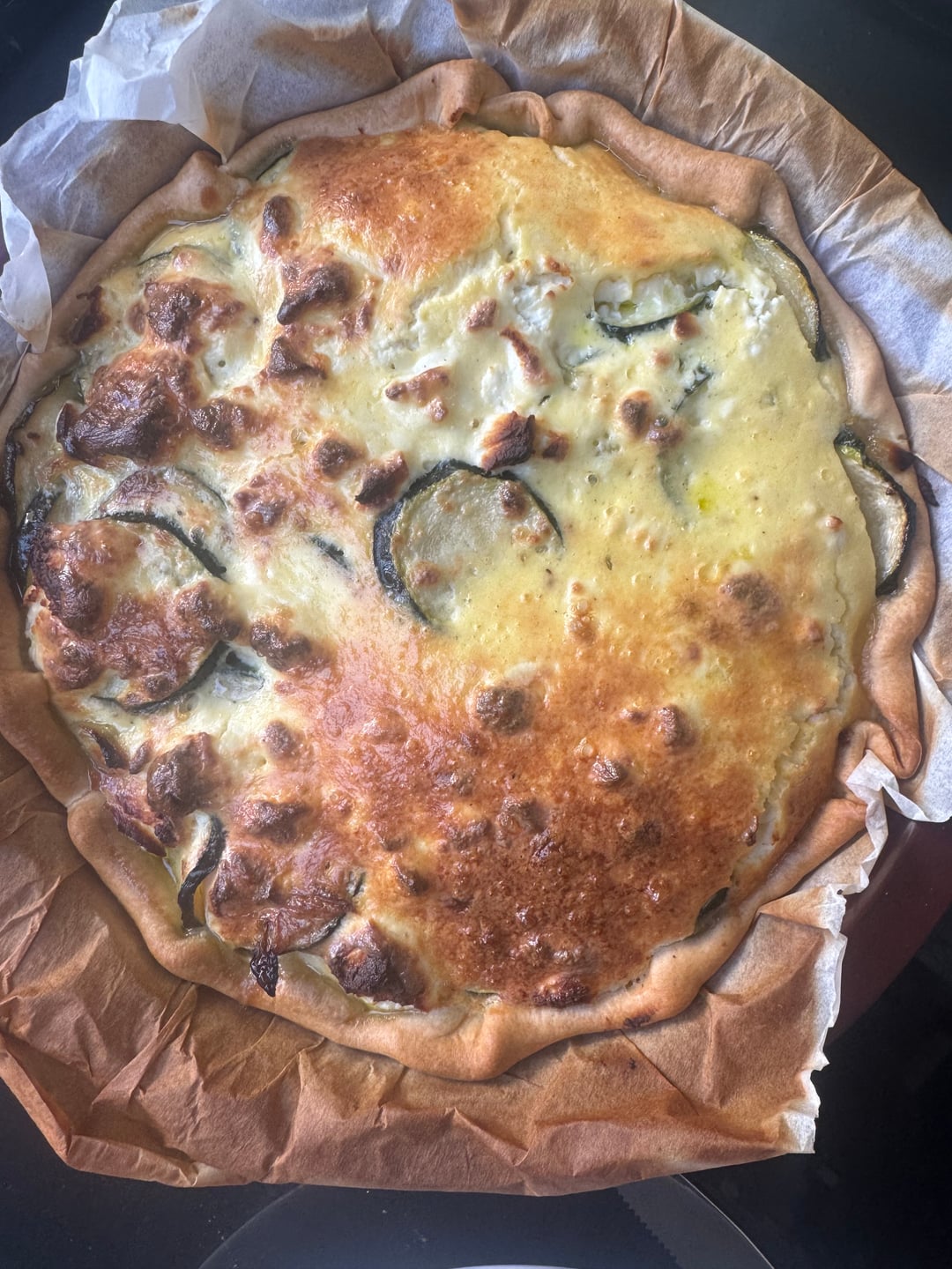 Quiche courgette-fromage de chèvre. Vous pensez que j’aurais pu ajouter du miel ??