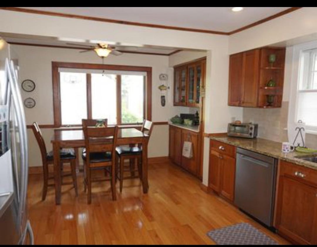 I don’t have the money right now for a whole kitchen reno (like painting the cabinets and countertops) but I HATE the drab, beige paint (we bought the house six years ago— these are pics from the listing) and need to find a color that doesn’t clash with the wood. I don’t want white so any other suggestions are welcome!!