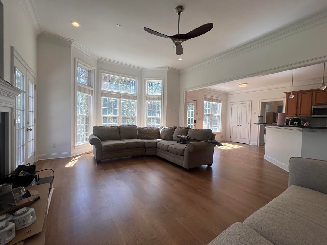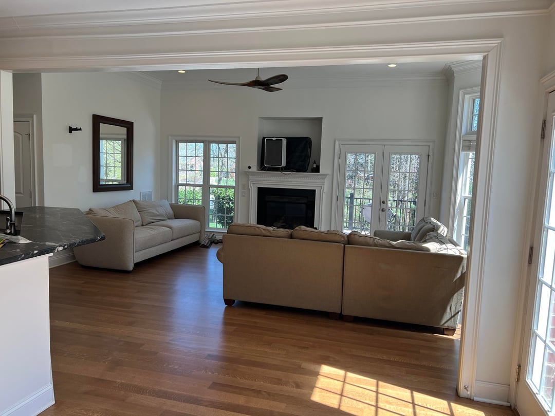 We just had our floors redone and are now trying to figure out furniture. The L shaped couch needs to go. I have firm back cushions coming for the other one so it will look better.
