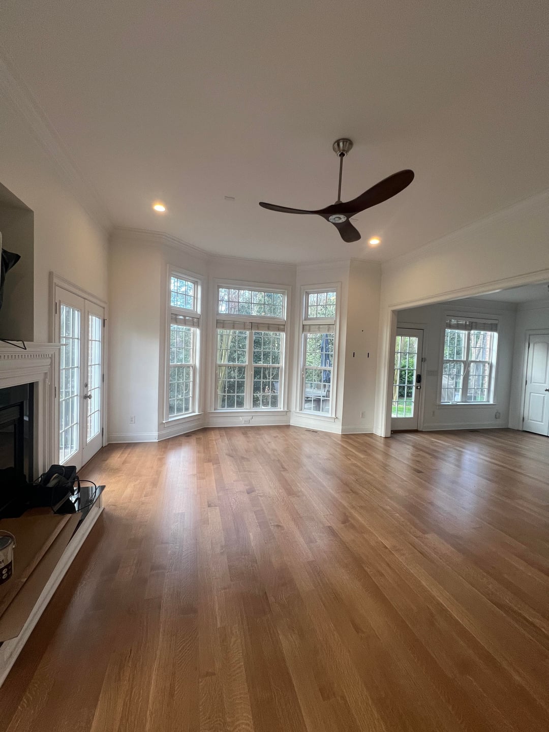 We love our bay window but the two couches are already 12 feet apart. If we put a non-L couch in the bay it would be even further distance which I think would feel odd. Possibly same with two chairs unless we got huge ottomans to fill the gap. I don’t think the room is large enough to turn it into two spaces i.e. chairs and small table by the window + two couches. Maybe a couch with chaise would be a compromise since the long end wouldn’t stick out so far..? We also have a child on the way so just something to keep in mind, honestly not sure what exactly to consider from that aspect.