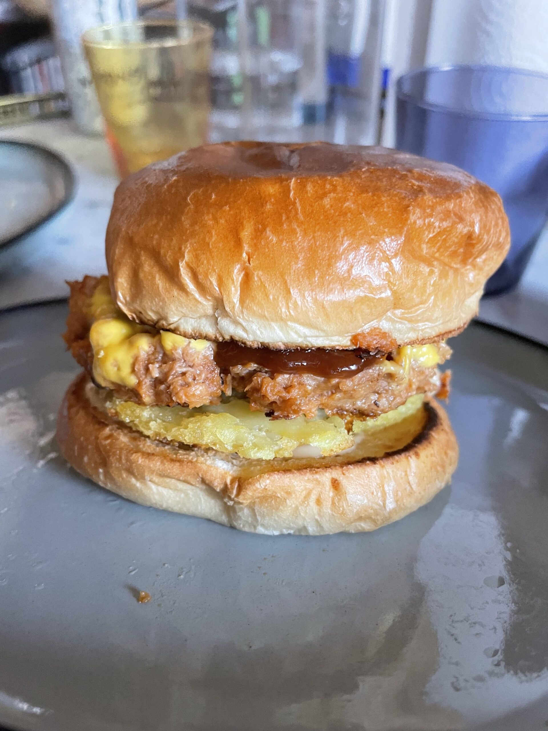 J'ai enfin reussi a maitriser une recette de streak vegetariens a base de proteines de soja texturees que je peux preparer a l'avance, ca se tient pas trop mal en cuisson et c'est facilement declinable ! Je voulais donc partager cette belle victoire culinaire (en fait c'est juste la meme recette que pour des boulettes de boeuf, avec l'oeuf et la chapelure et a la place du boeuf c'est des proteines de soja mixees et un peu de maizena) (les burgers étaient mega bons du coup)