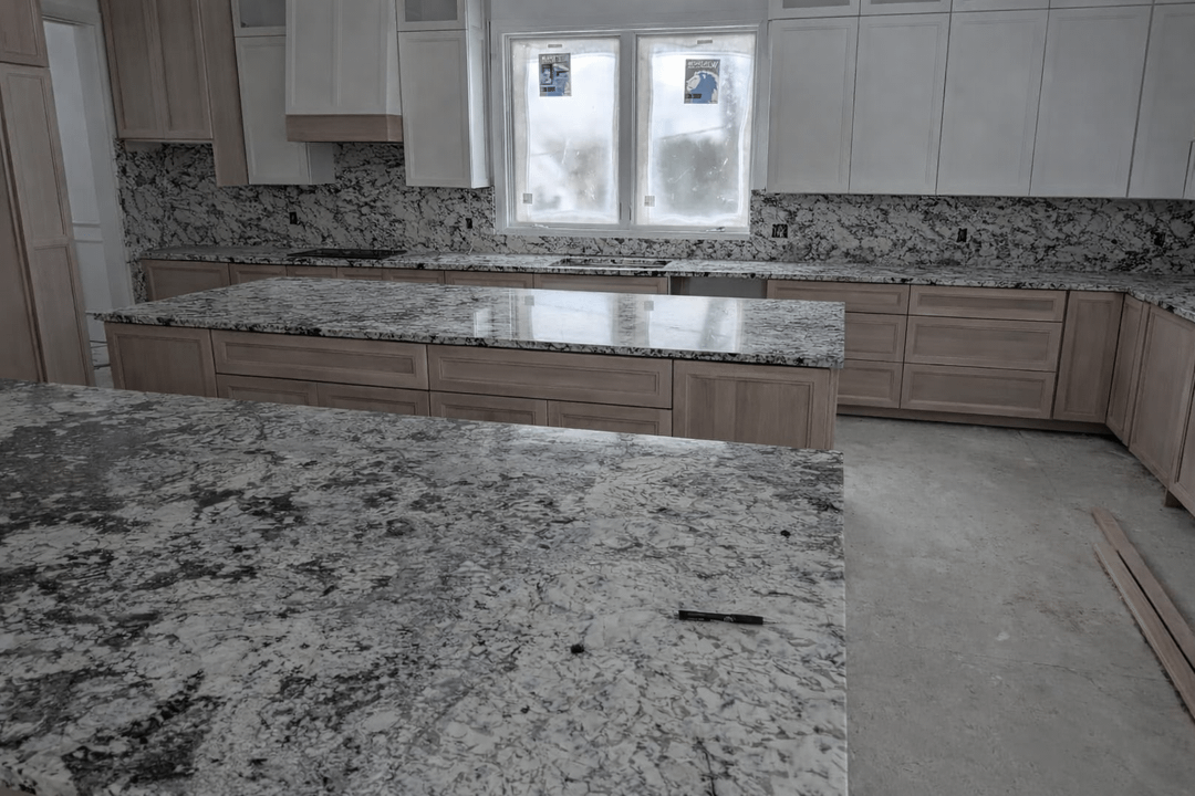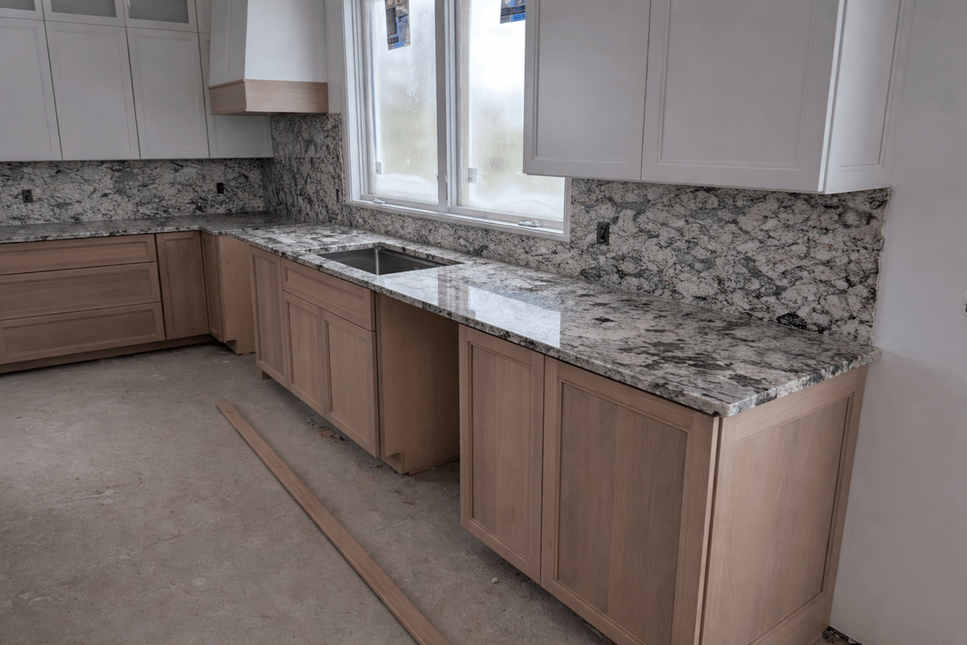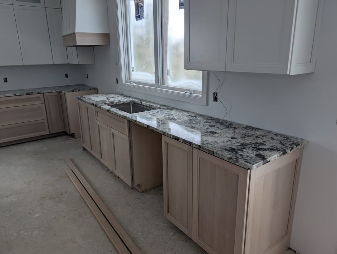 We installed the countertops and my wife wants to do the backsplash with the same granite. The designer thinks it will be too harsh and stand out too much and take away from the calmness of our white kitchen and calm cabinets. She suggested we do a soft tile. My wife had always wanted to do the granite though but is afraid maybe she is right but can't tell. The first 3 pictures are what our kitchen looks like currently. The next 3 are what Chat GPT thinks it will look like with the granite countertop.