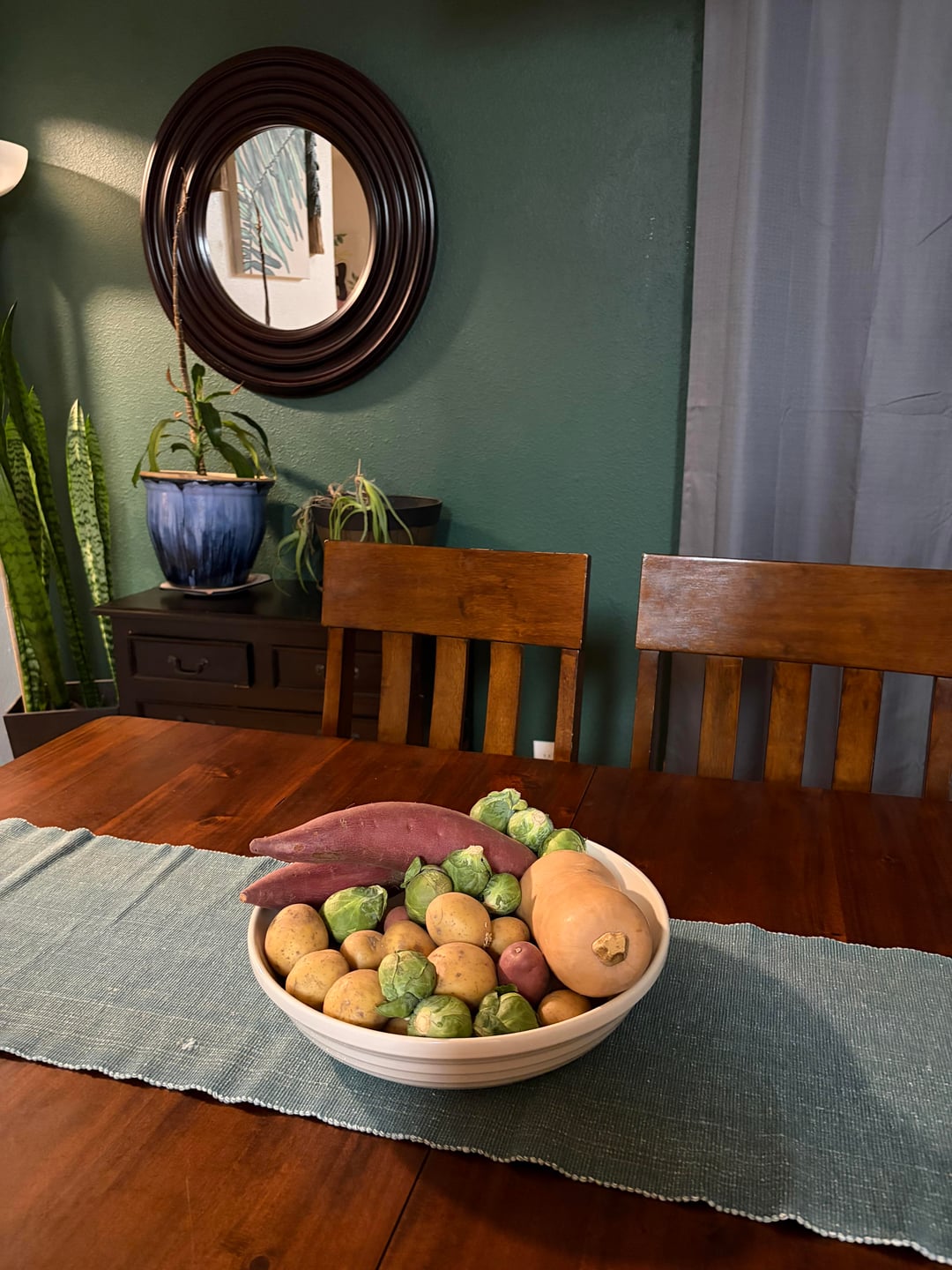 Due to the rising prices of groceries, I am now using regular food items as decor. These kinds of boring produce would normally be behind cabinet doors or stuffed in a drawer somewhere. Not anymore. If I am going to pay an arm and a leg for my potatoes, brussel sprouts and butternut squash, then I’m dang well going to enjoy showing them off first…. #grocerycore