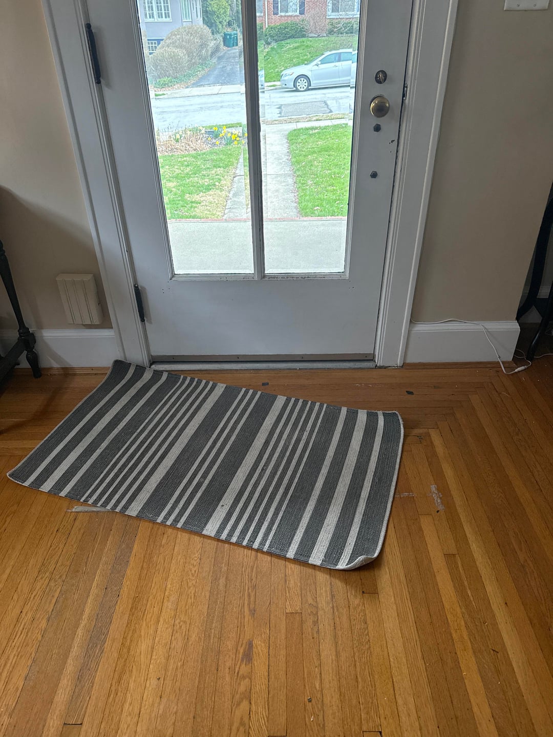 My mom’s area rug was taped down because it was a trip hazard and it ended up ruining her wood floor.