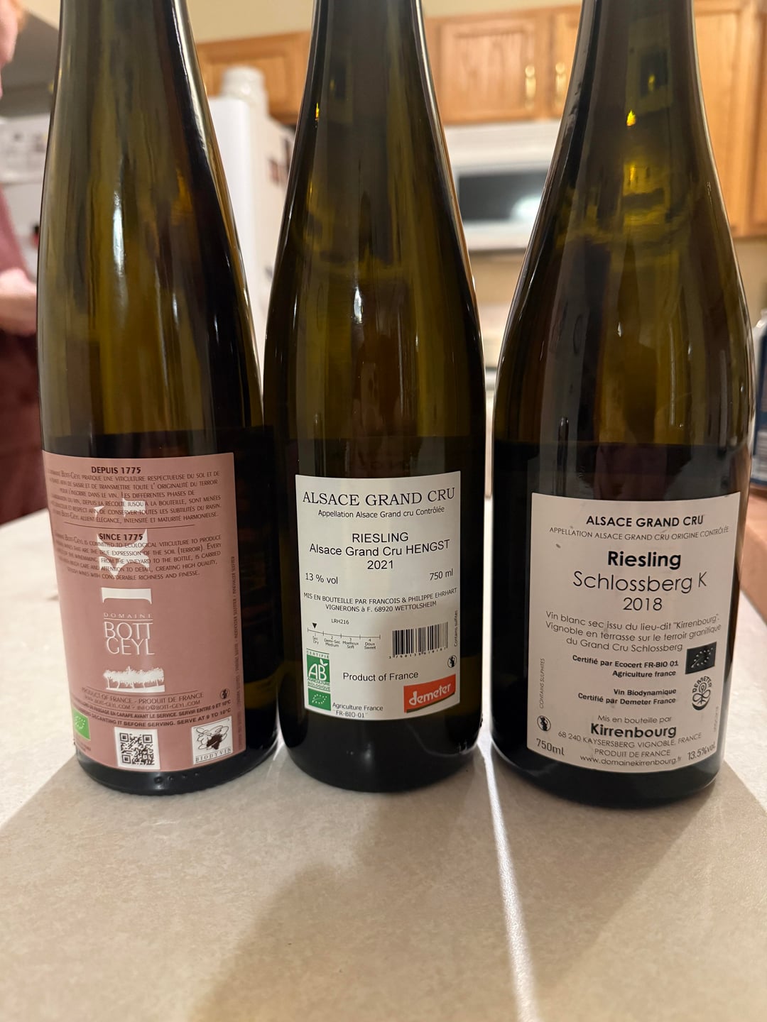 Hi, I had a trip to Strasbourg and the surrounding areas. We had so many wines we loved but only brought back a few. We plan to drink them with friends over the next several weeks, but know almost nothing about them. If I were to enjoy these over dinner with friends, in which order would you suggest. Also, are these good wines? I bought two in Colmar at a Chartreuse bar where the owner and I shared the same enthusiasm for spirits, but our conversation was hampered by a bit of a language barrier.