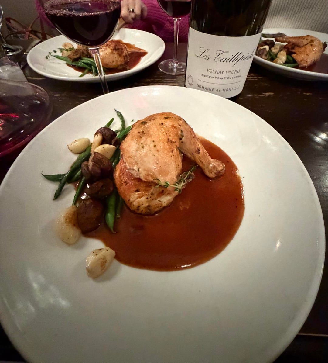 Paired with a very simple roast chicken, jus, haricot vert mushroom, and mash potatoes. Absolute heaven on earth.