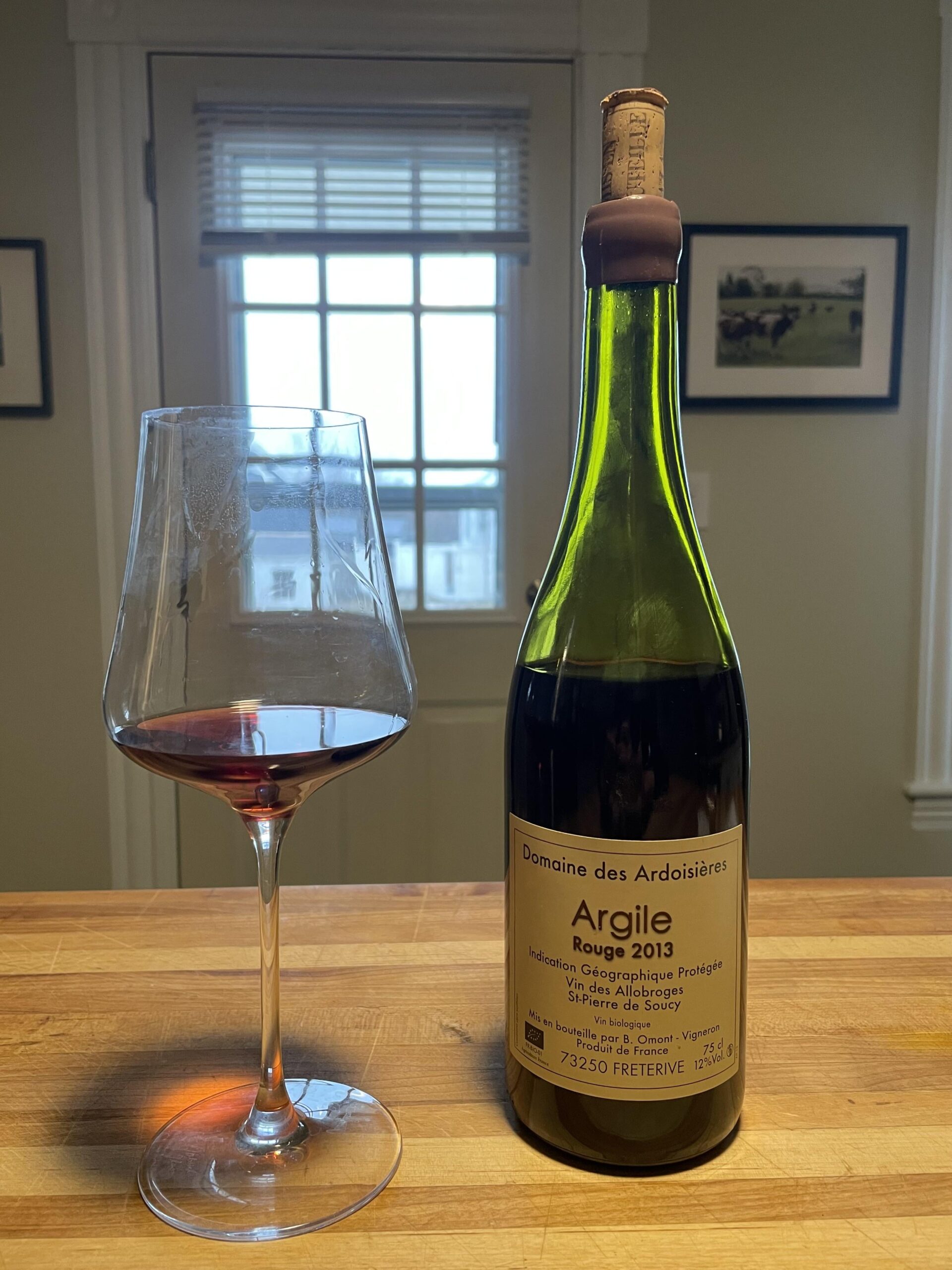 Balanced palate that is starting to develop secondary flavors with beguiling depth and longer finish. Seriously juicy and complex. Age your light reds! Compared to my Gamay point of reference (Lapierre Morgon), this has slightly higher acid and is less plush. Some of the fruit has slowed down, but I’m seriously impressed. 92 pts.