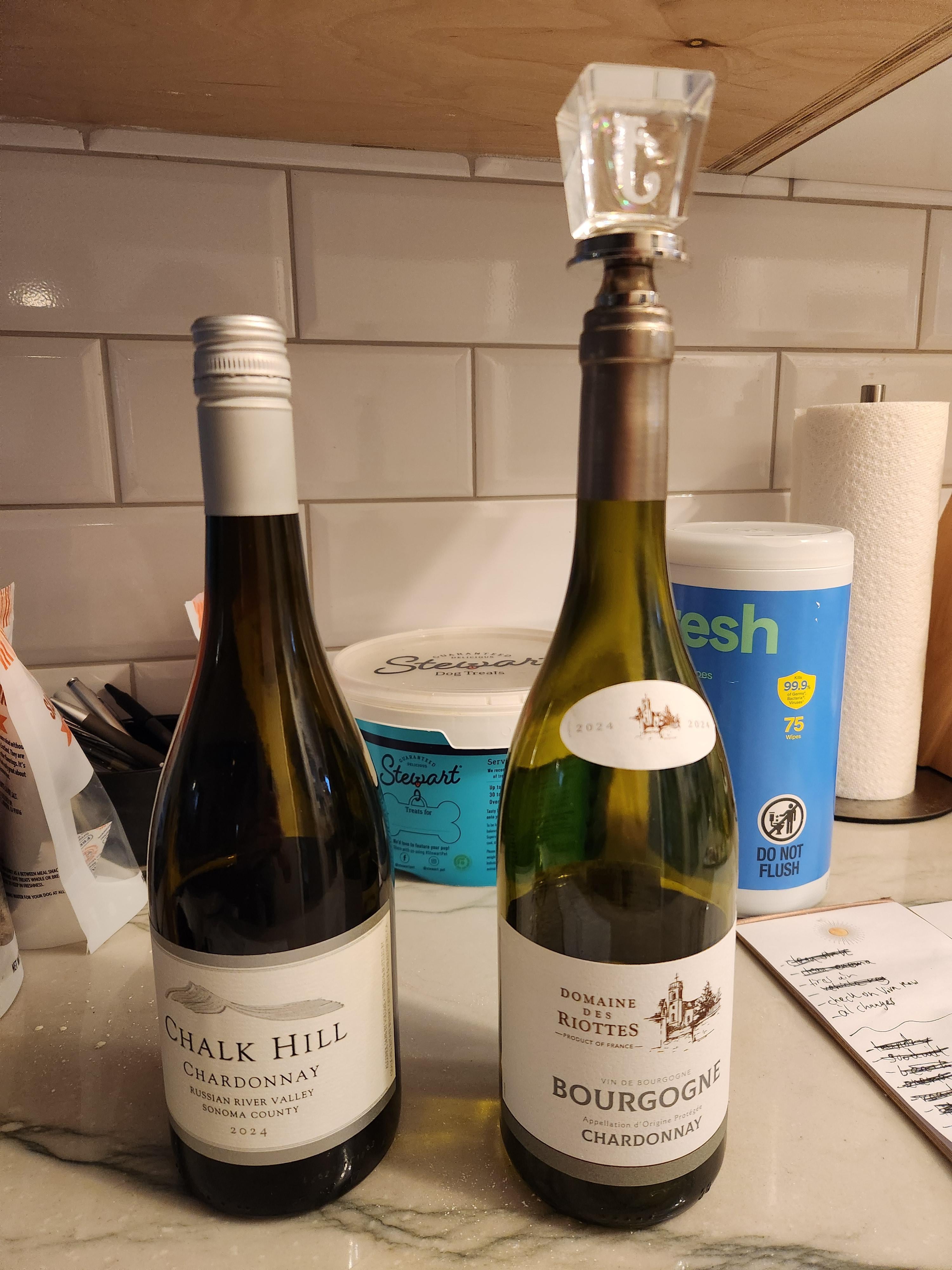 I'm a wine noob so I will lack the vocabulary to describe this comparison well. But I tried these two bottles side by side with my mother and we both strongly preferred the French one over the Chalk Hill. For me, the Chalk Hill tasted harsh or sharp while the Riottes was so much smoother, cleaner, and more pleasant to sip. My mother agreed with this take.