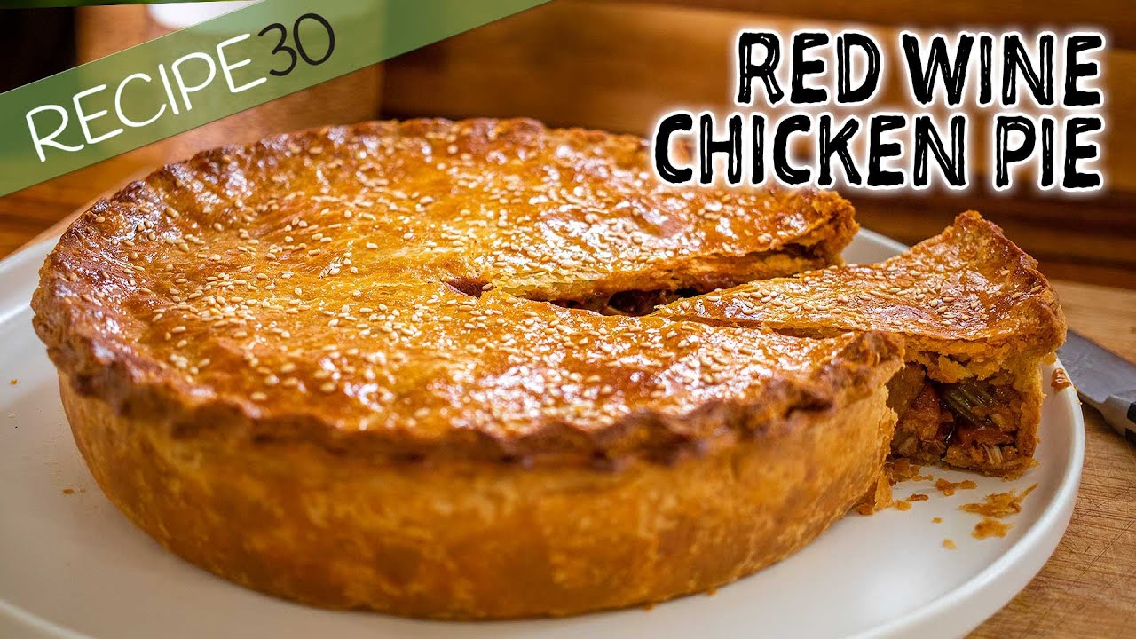 If you like red wine, this will be the best chicken pie you will ever taste. There’s something amazing and homely about a flaky buttery home made savoury pie. You can cut corners if you buy the pie crust already made, but making your own is well worth the effort. For this pie, I used a 9 inch non stick cake pan.
