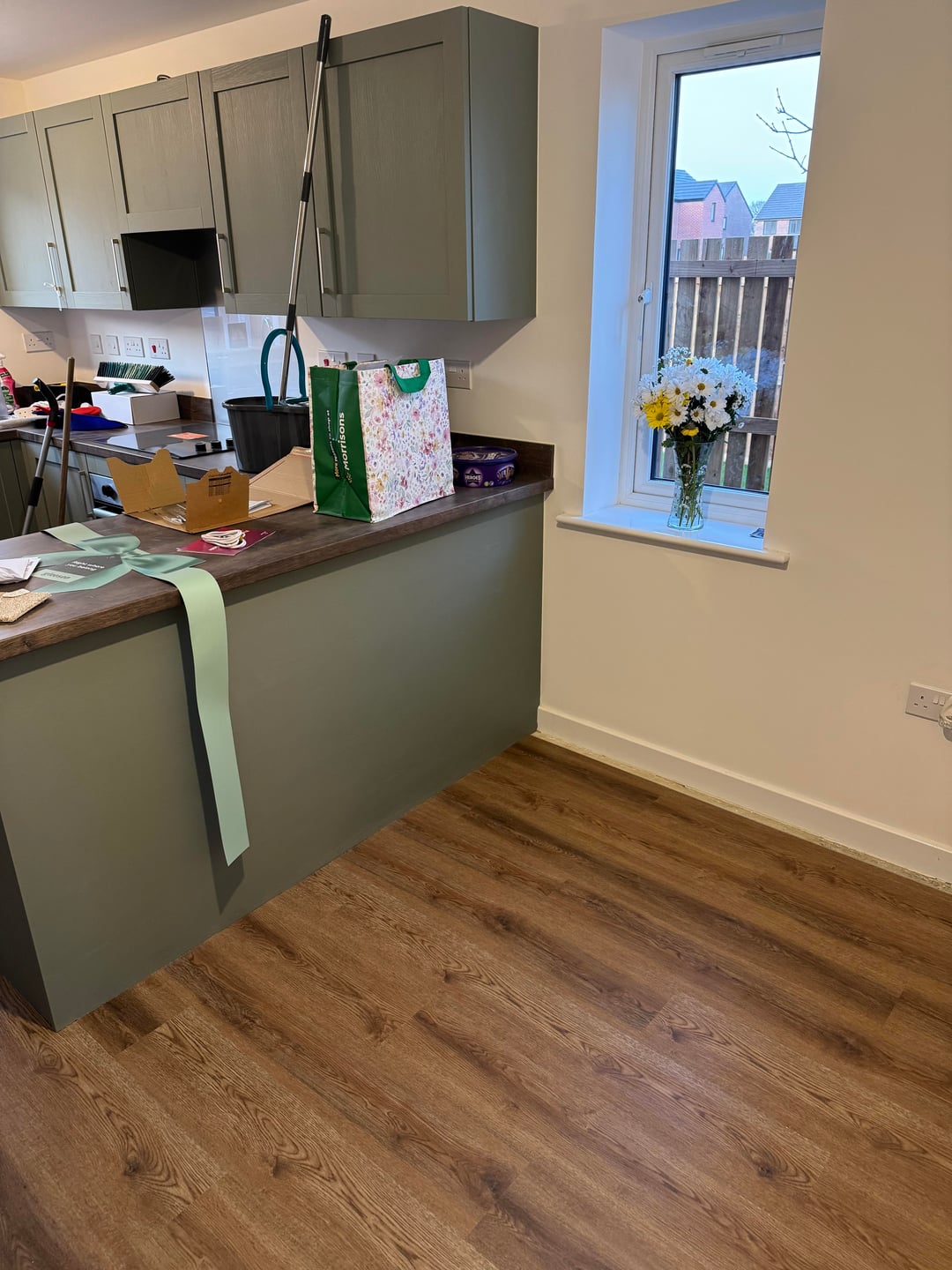 Hi, I'm hoping for some help/advice for our kitchen/dining area space. The first 2 pictures are our kitchen, the colour is most accurate to the second picture. Then we have quite a warm-toned floor (pics 3 & 4, pls ignore the mess), which I don't love with the worktops. We ended up buying cream appliances and the cream dining chairs in pics 6 & 7. Now we're at a bit of a standstill for what to do with the dining table & the rest of the room. I'm open to ANY suggestions. I've been looking into rugs to go under the table to kinda mask some of the floor. Also looking into backsplash/paint colour for the rest of the room. Any ideas would be greatly appreciated, thank you!