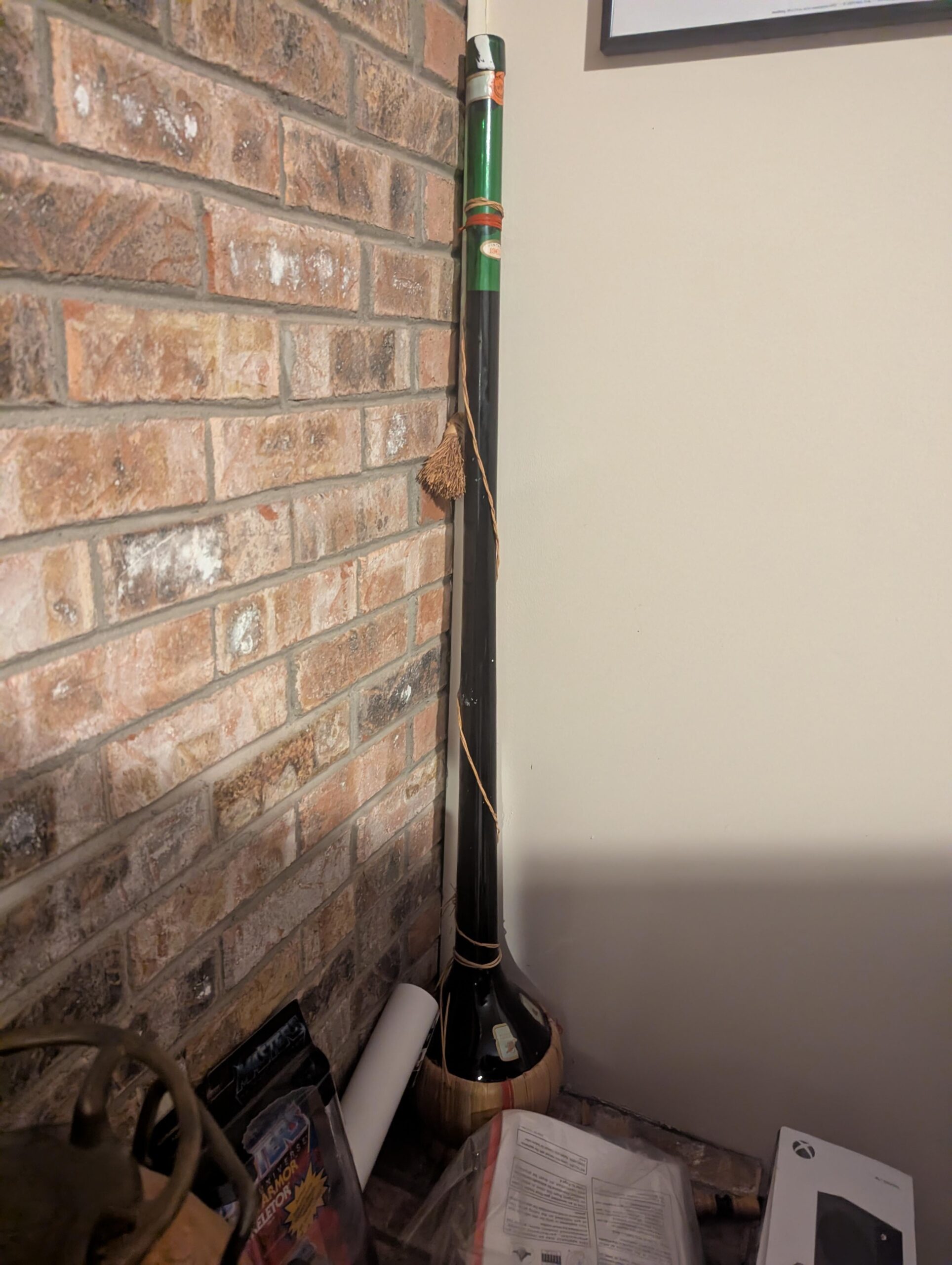 DontLookBack_88 2 hours ago It’s called a “fiasco.” Basically cheap Chianti put in these crazy bottles and wicker baskets for tourists to take as a souvenir.It once contained drinkable (probably not very good) wine, but it’s certainly shitty vinegar now.