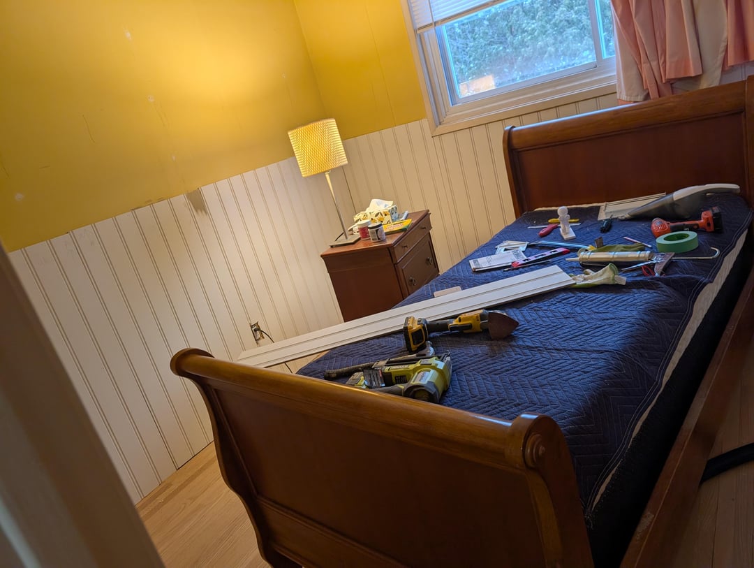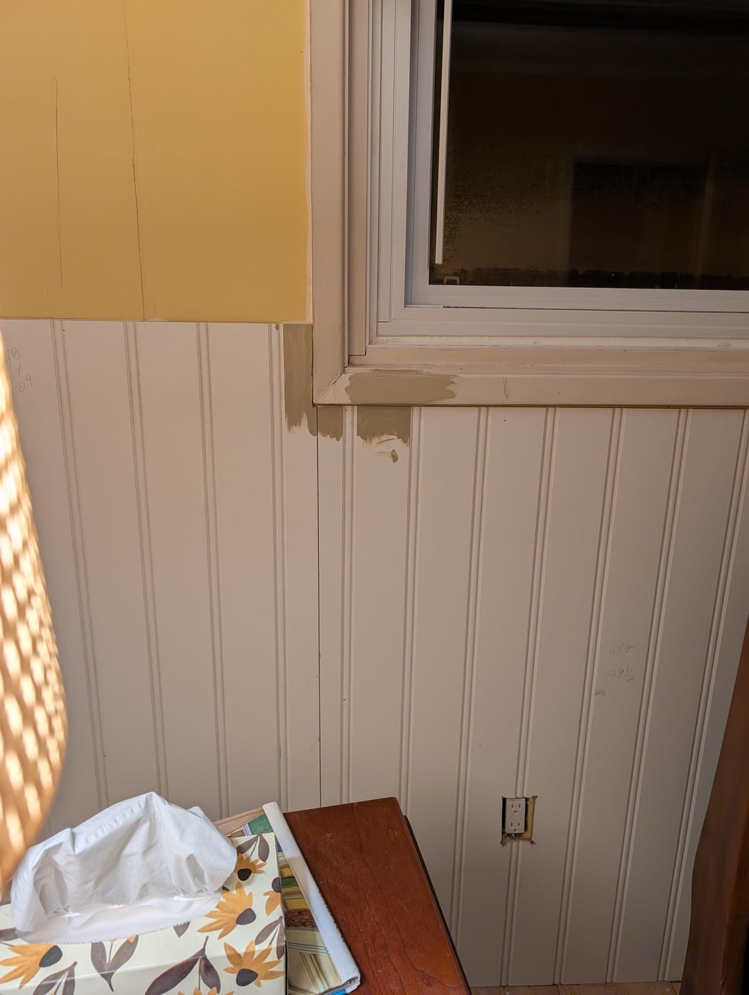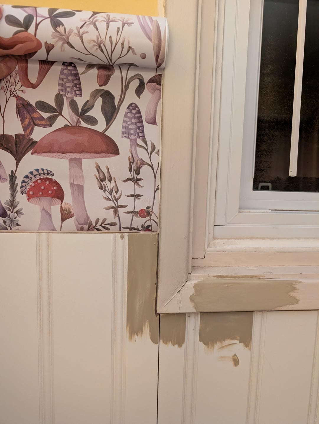 There is trim going on the wainscotting itself but not under the window which will be the same colour as the wainscotting.