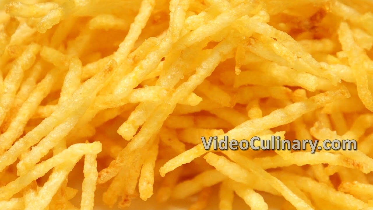 Make crispy thin Straw Potatoes (also known as Shoestring and Match Stick Fries) at home from scratch! Enjoy delicious, golden homemade chips. Get the written recipe + photos here: