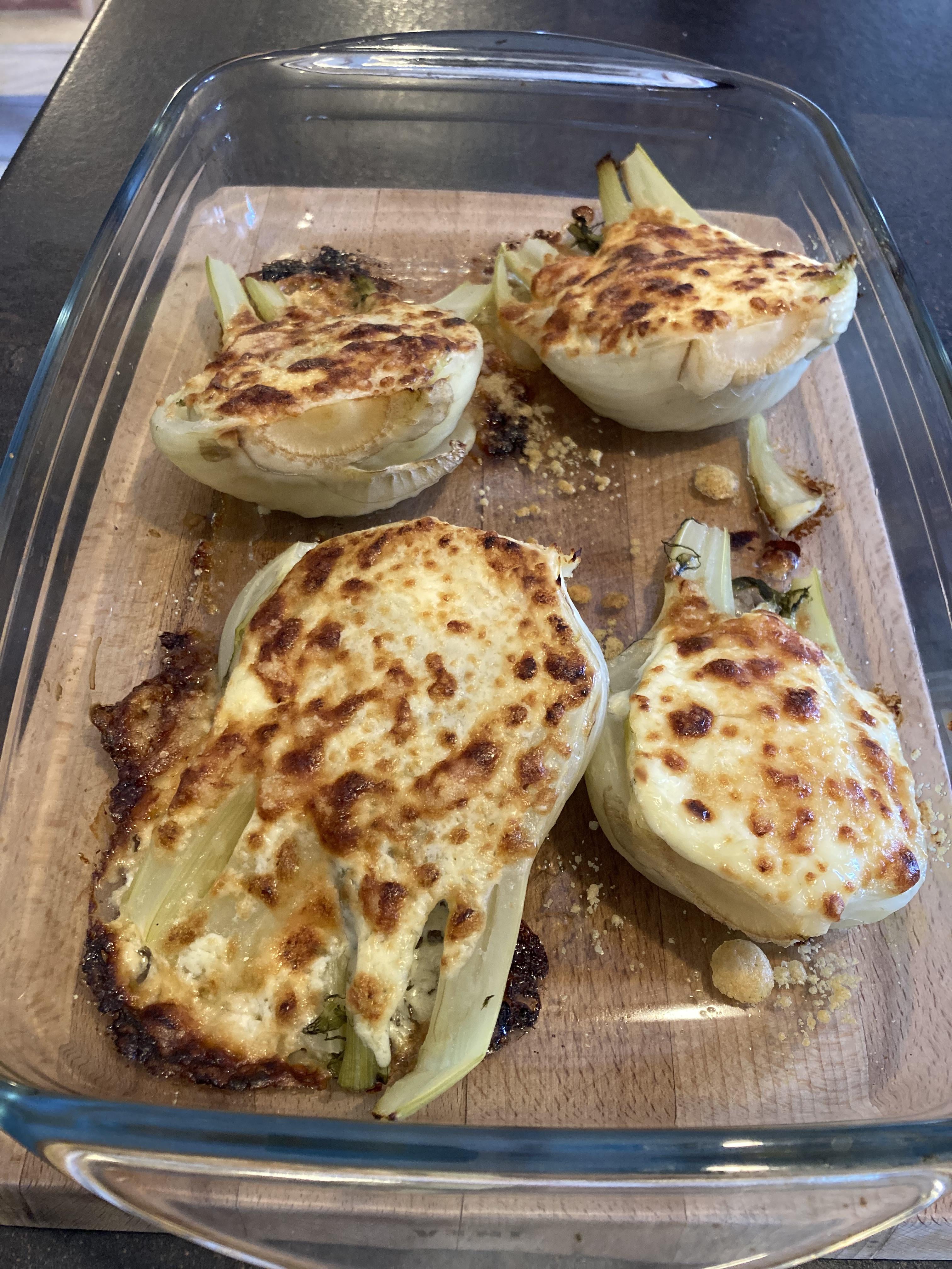 – 2/3 gros bulbes de fenouil précuits à la vapeur comme toi. Coupé en tranches grossières