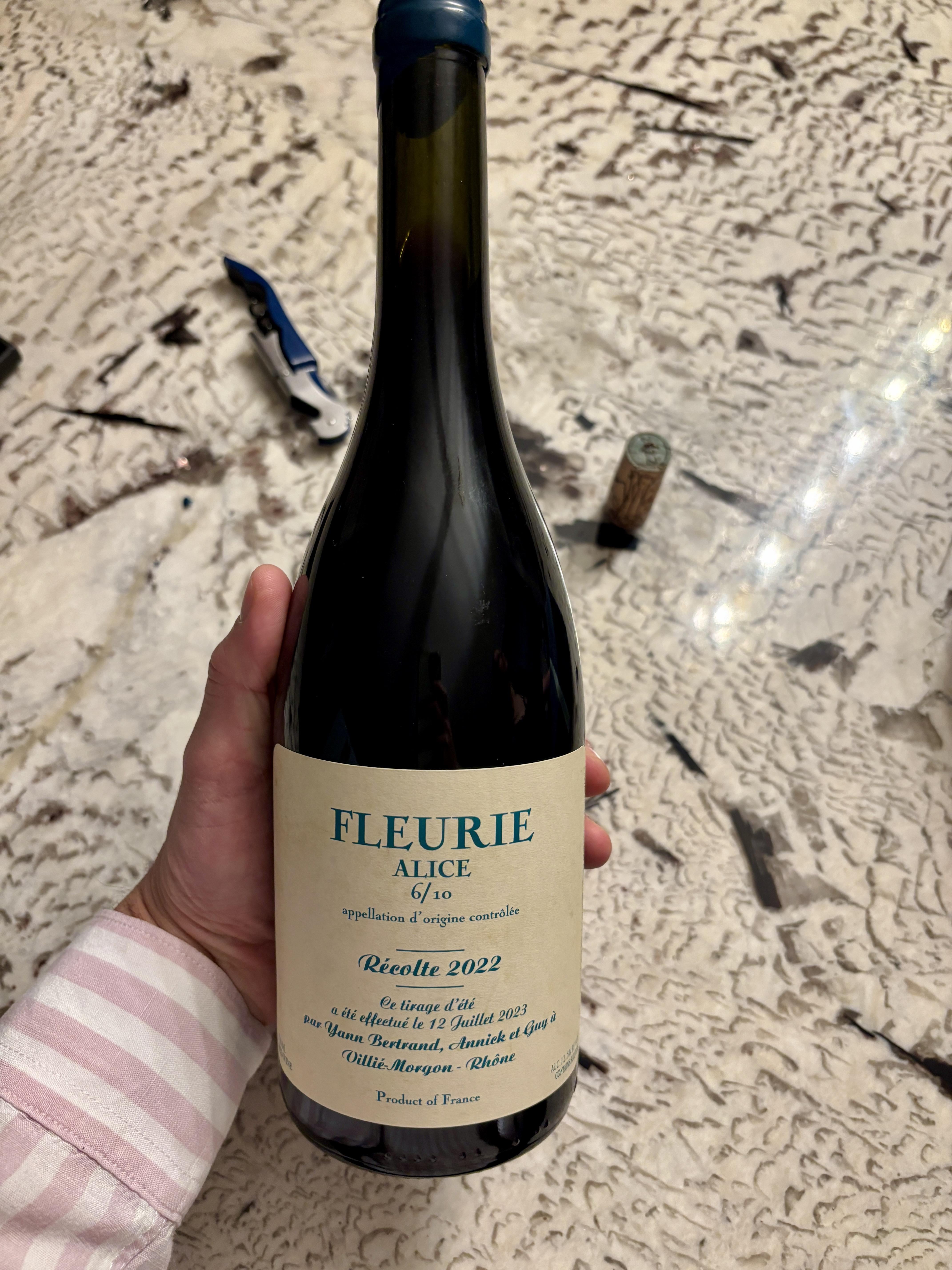 **Tasting notes:** Ripe nose with juicy strawberry, red cherry, cinnamon spice, hints of violet and licorice, and some earthy funk. Intensely fruity palate with some herbal notes, more tannin structure than I expect out of Fleurie (medium- to medium in the grand scheme of things), and balanced nicely by medium+ acidity. Overall a really nice, albeit bigger/riper, example of low-intervention Cru Beaujolais.