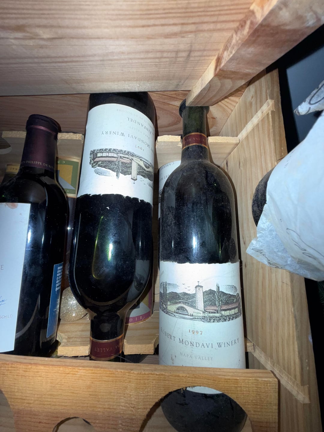 I posted earlier about finding a 1997 regular mondavi zinfandel in my parents basement. There were some other bottles pictured below, but to get a baseline to compare other things to, I just popped this bottle open of 1997 cab.