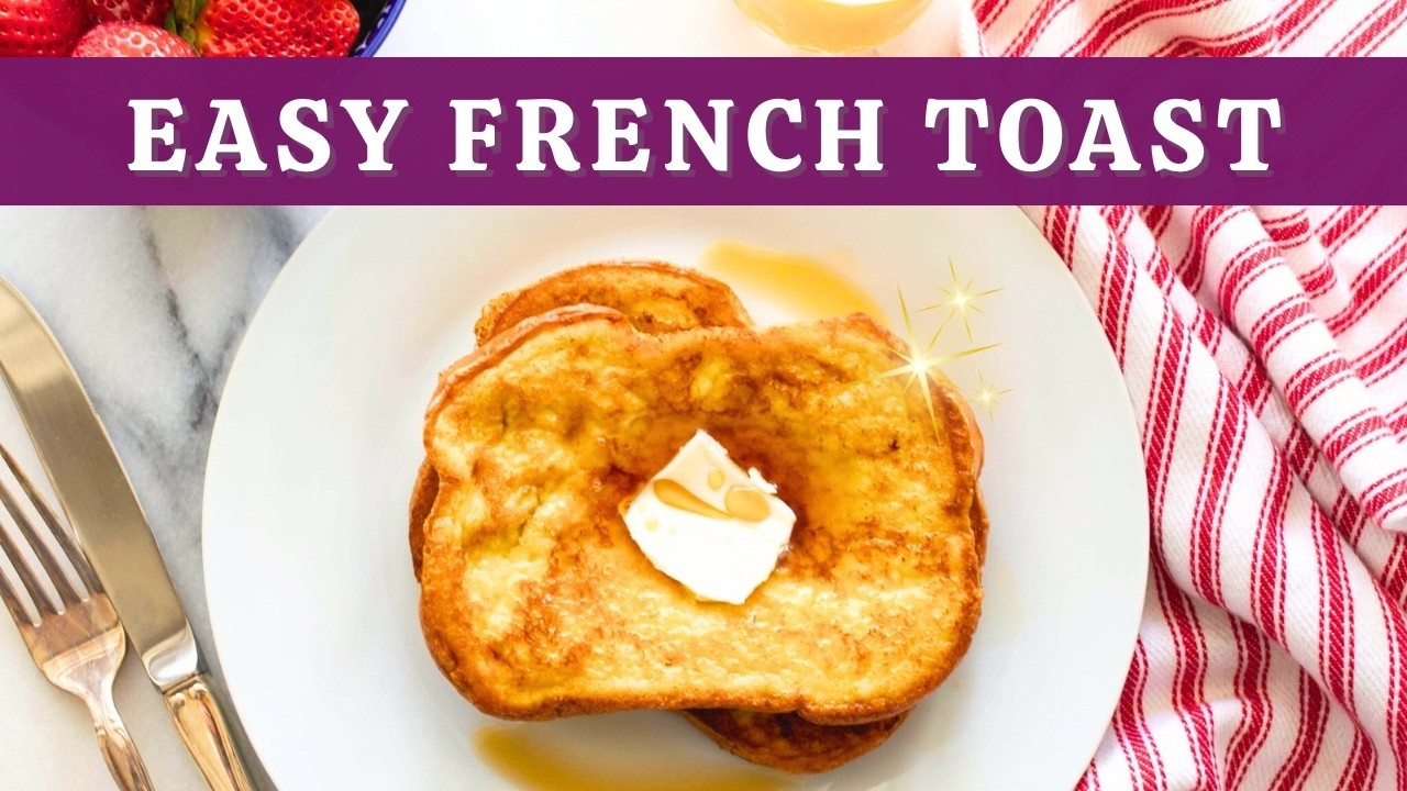 Today we’re making easy French toast, both sweet and savory! French toast was my kids’ favorites when they were little and I’m hoping you’ll try it with your kids or grandkids. For toppings, try maple syrup (or the sugar free monk fruit version), fresh fruit or whipped cream! If you’re looking to avoid sugar, try the savory version! Simply use an unsweetened bread like sourdough, soak in the half-and-half and egg, and then enjoy with a fried egg, sautéed mushrooms, cheese and fresh herbs. Hope you enjoy!