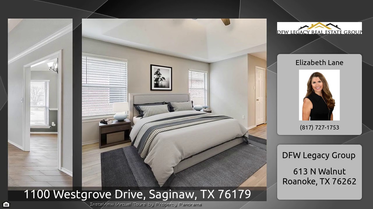 The Virtual Tour for the property at 1100 Westgrove Drive, Saginaw, TX 76179 listed for $265,000: Other homes for sale by Elizabeth Lane of DFW Legacy Group: Beautiful UPDATED 3 bed 2.5 bath brick home on a CORNER LOT in Eagle Mountain ISD. Amazing UPDATES make this home a standout! NEW Roof, WATER HEATER, Wood plank tile flooring, CUSTOM SHOWER, Interior Paint, Painted Cabinets, Countertop, 2 inch blinds, Hardware, Fixtures & FRONT LAWN. Functional floor plan with split bedrooms, family room, dedicated OFFICE with french doors, eat-in kitchen, and large flex room can be used as dining …