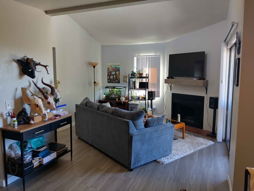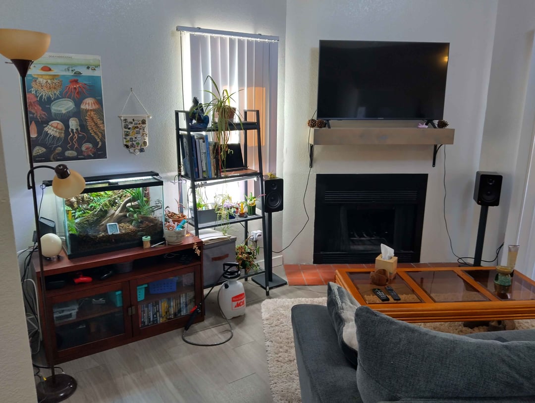 I have a lot of thrifted furniture that'll eventually be replaced with things that look more cohesive, but it's a WIP. I'm just focused on the overall layout right now.