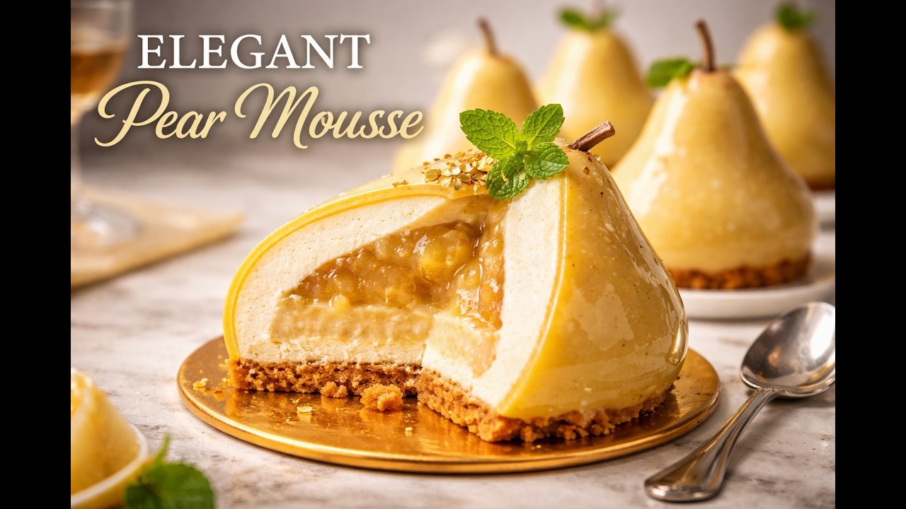 Discover how to create a stunning pear mousse dessert with a luxurious golden finish and a perfectly creamy texture inside. This elegant pastry is inspired by high-end patisserie and is guaranteed to impress your guests.
