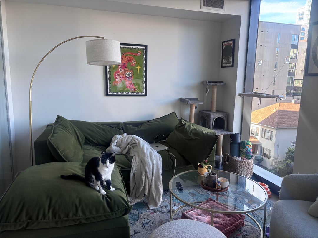 Can I ask why the TV stand and the table aren’t against the wall? They seem to be eating into an already small living space and making the space cramped.