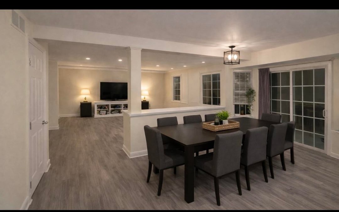 Half wall or half wall with column divides the space nicely!