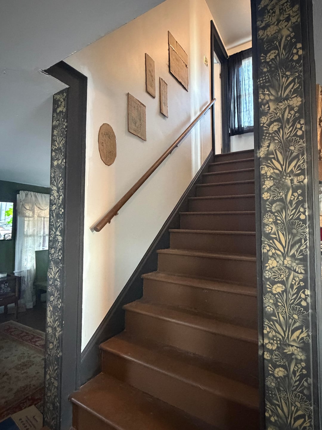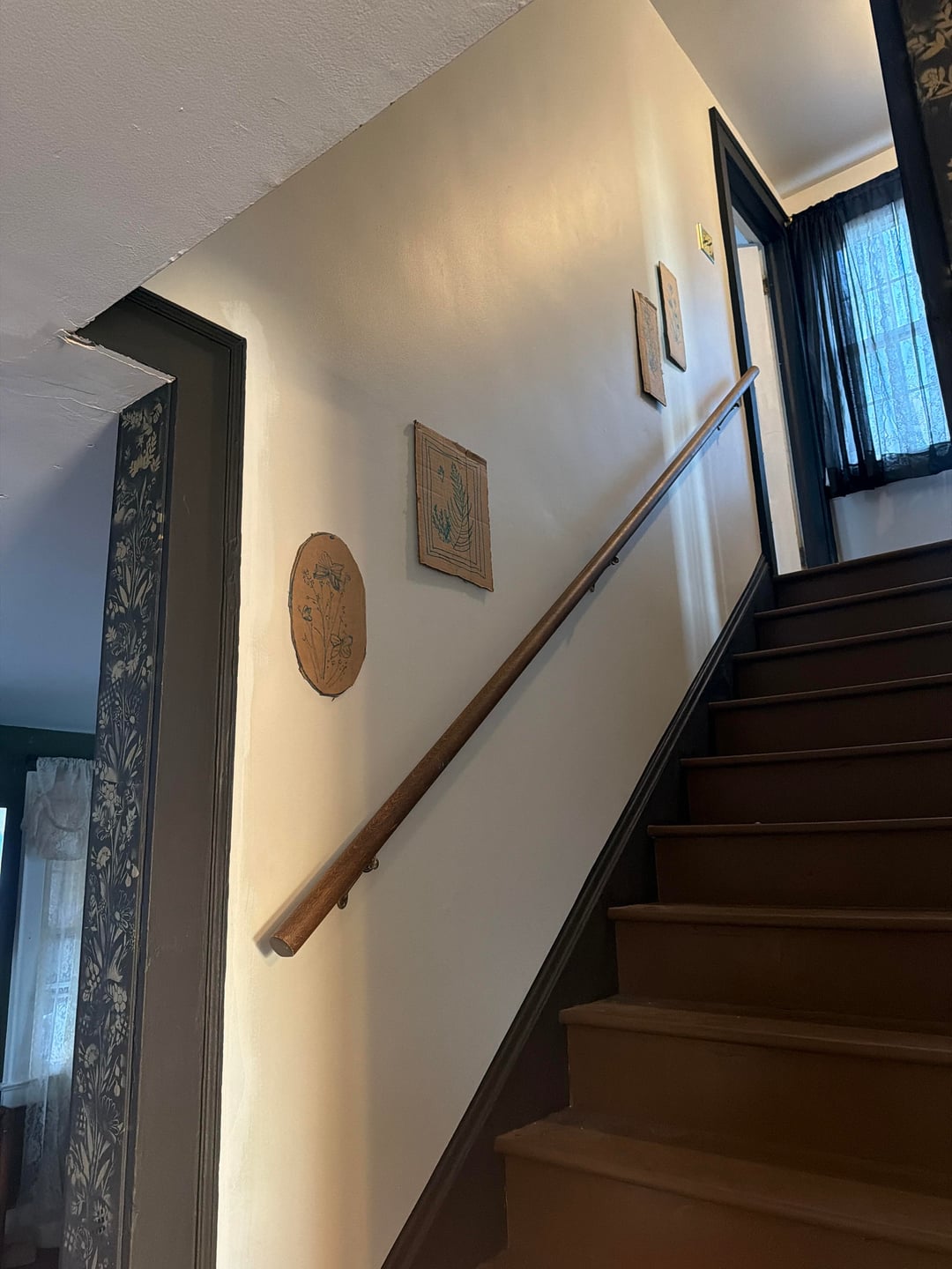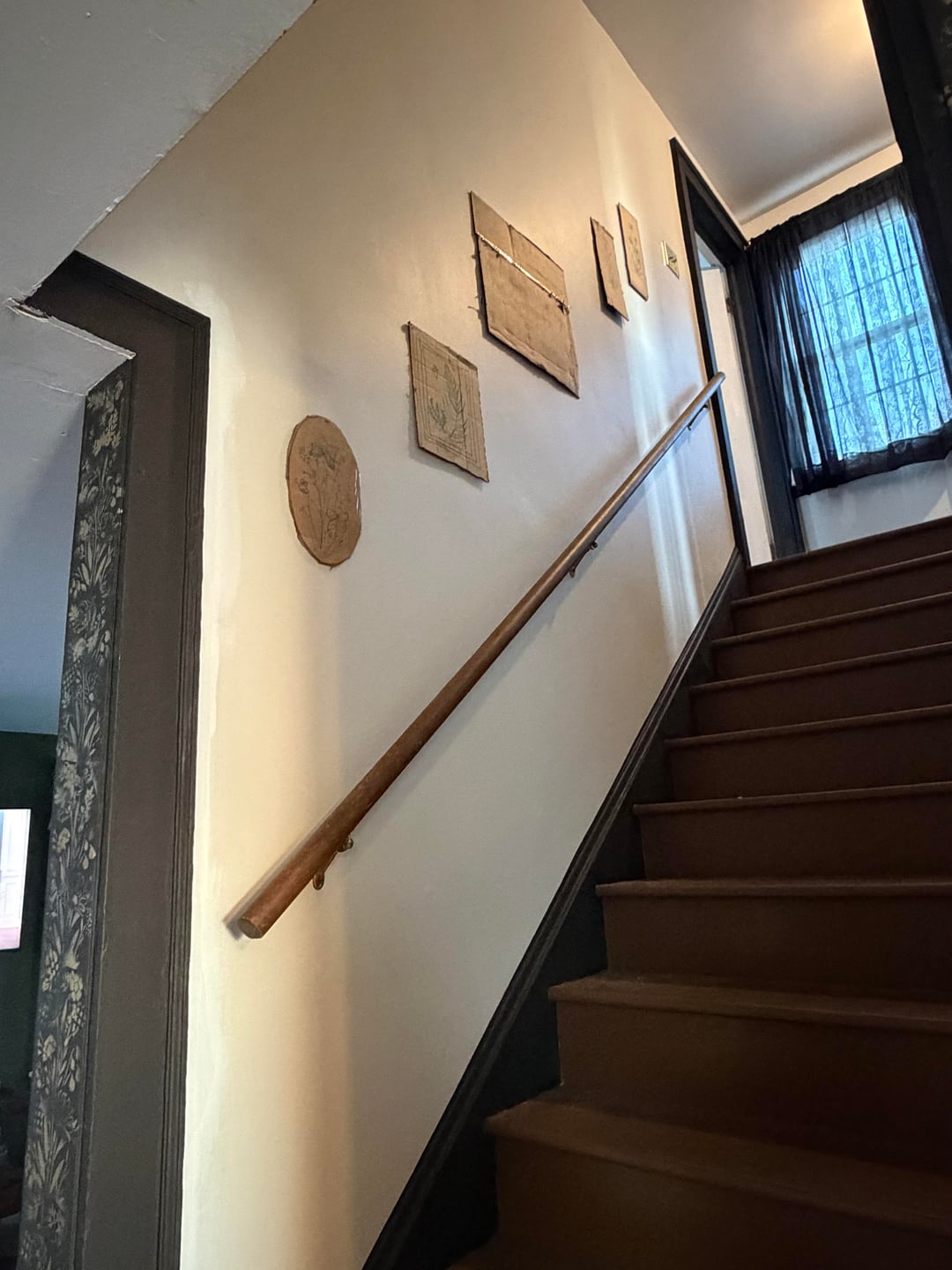 Any tips for planning out my gallery stair-wall? I’ve cut out different sizes of art pieces I have in cardboard and used tape to plan out the layout. I’m thinking it needs one larger statement piece and then a few small filler frames or sconces. I love dark academia, vintage, clean maximalist vibes.