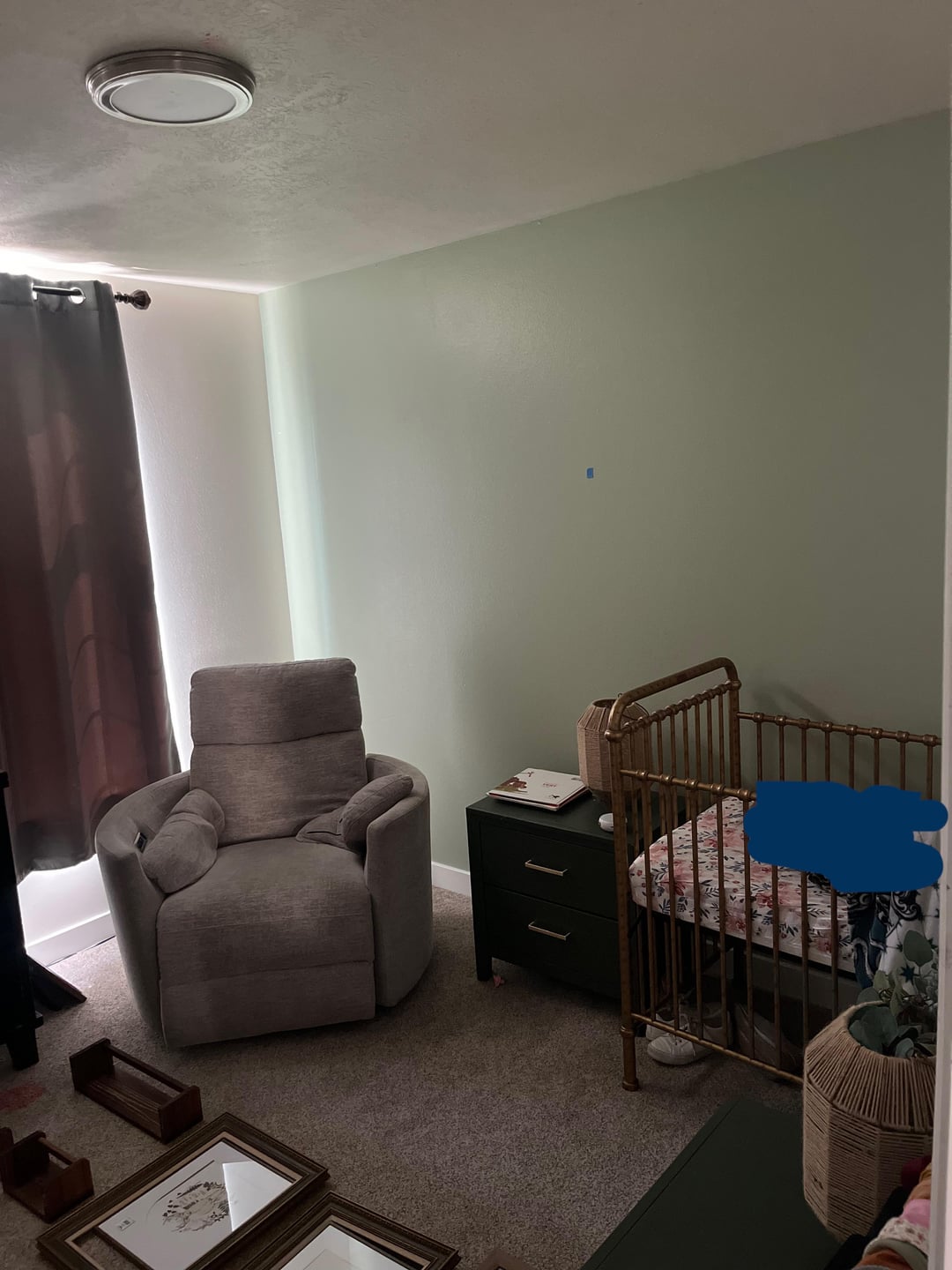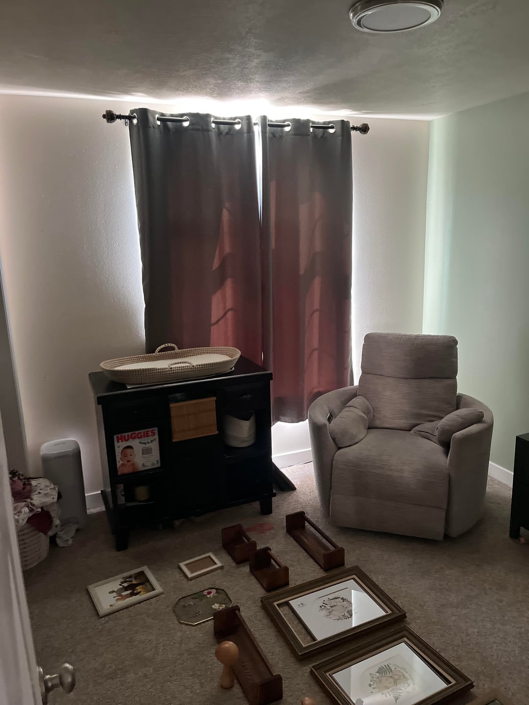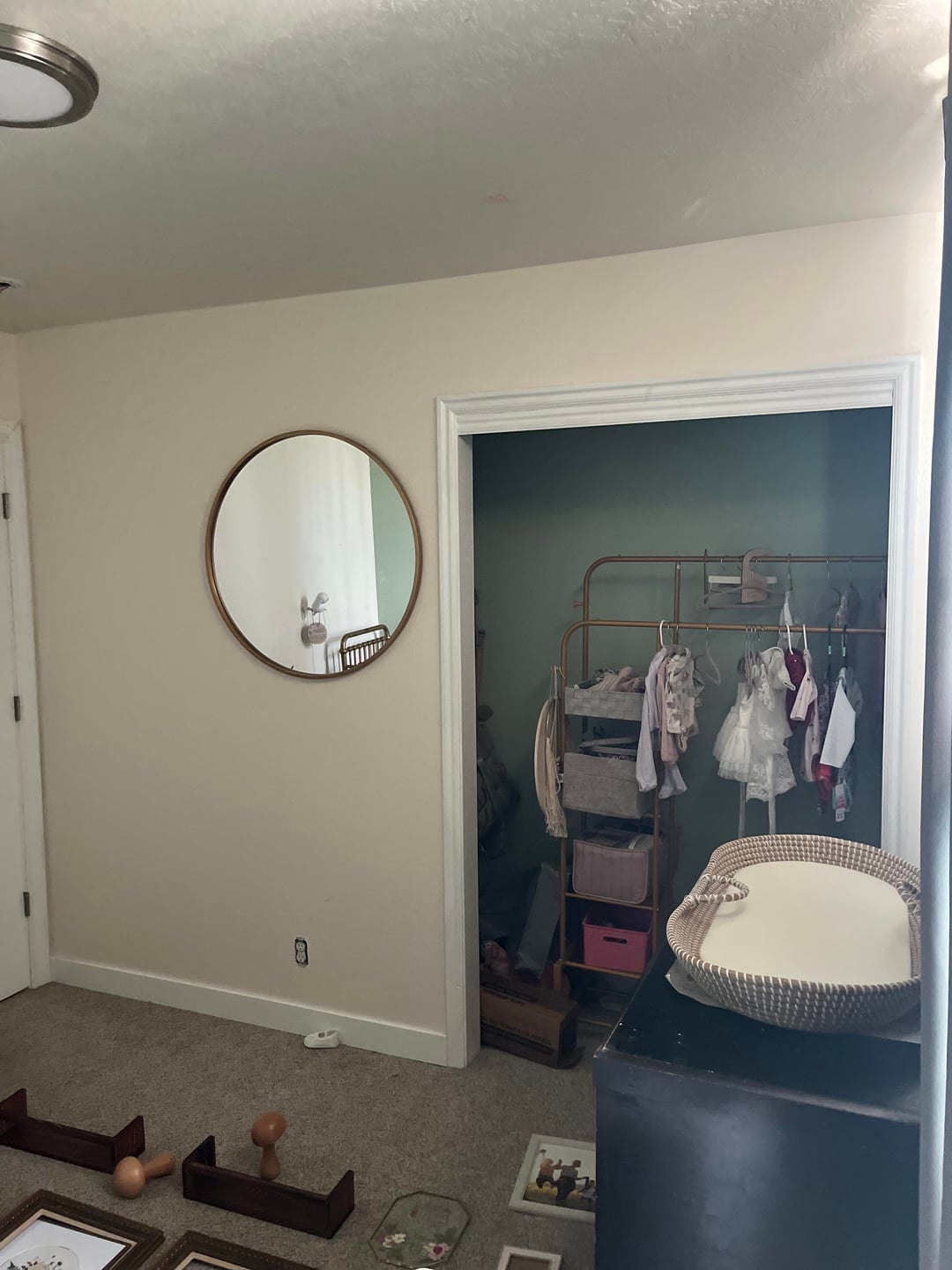 I loved picking out the things to add to my nursery but it turns out I’m absolutely hopeless as putting them all together. I’ve been in choice paralysis for months; please help me so I can finally finish this room. I don’t love where the bedside tables ended up, but I can’t bring myself to get rid of them. The crib feels like it should be somewhere different, but I like my armchair where it is. I’ve considered putting the changing table/shelving unit in the closet, but then aid have to install some kind of hanging situation for the clothing… and then there’s the wall art… don’t even get me started in the wall art…