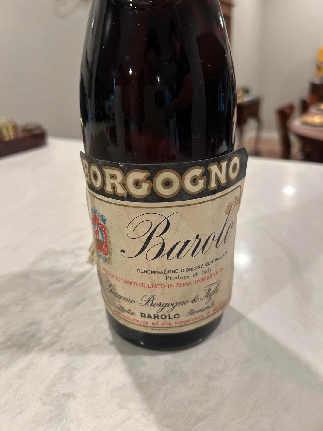 Purchased from an estate sale of a collector for $75 as a bit of a gamble. “Riserva” sticker with the vintage and the back label missing. The cork seemed to say “196-“ but was pretty hard to read.