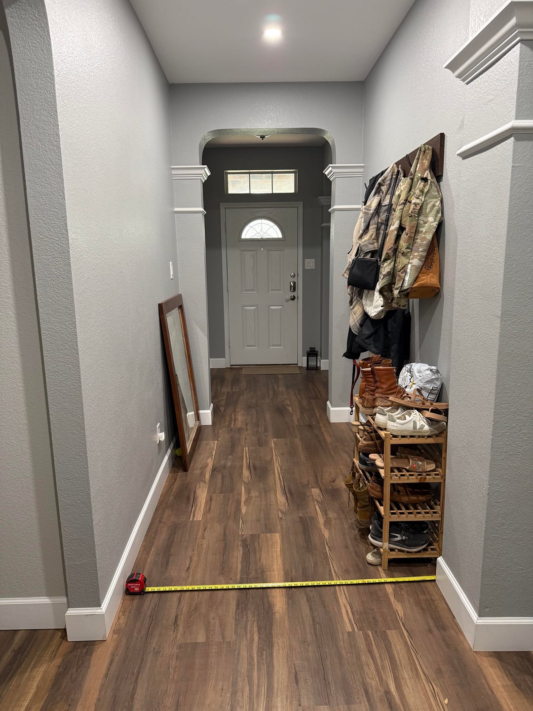 We just moved into our house and have this long entry hallway that I’m trying to figure out what’s the best move here. It’s about 12 ft long and 4.5 ft wide.