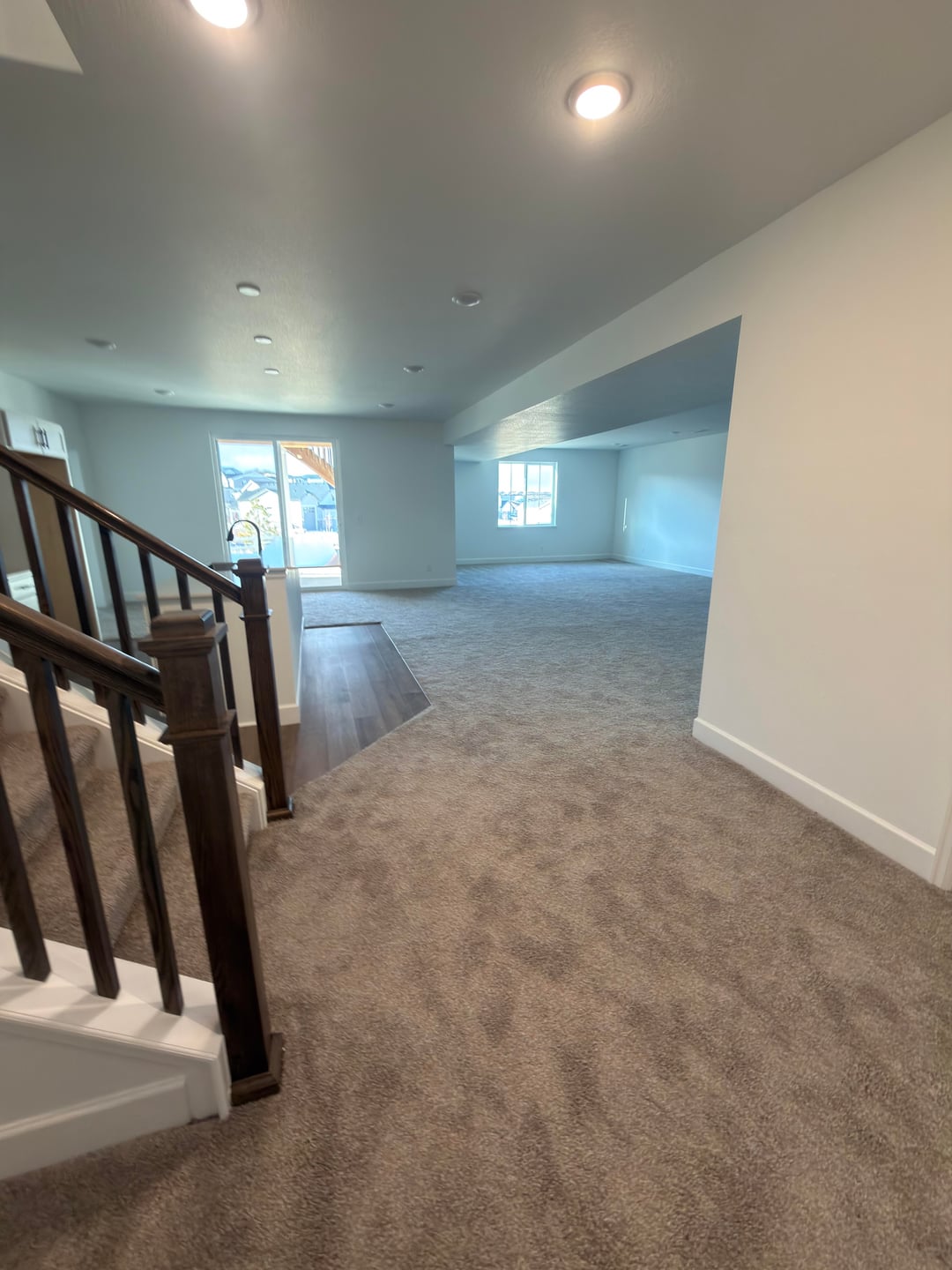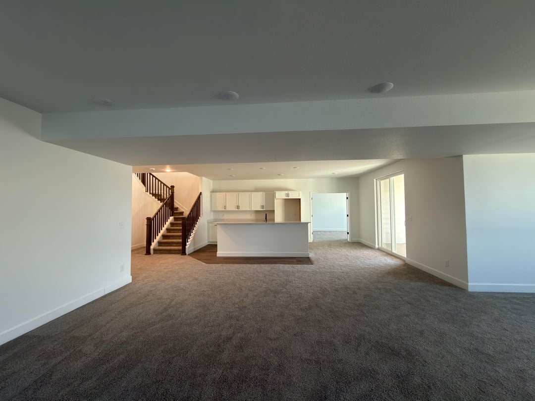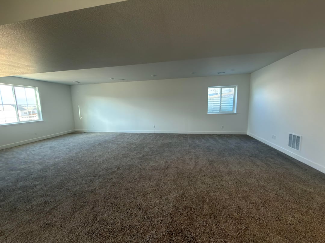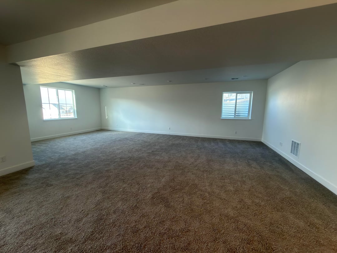 Basement rec room. I have a big tv, was also thinking of a bourbon room in the back corner of the large area, I have a sectional brown recliner.