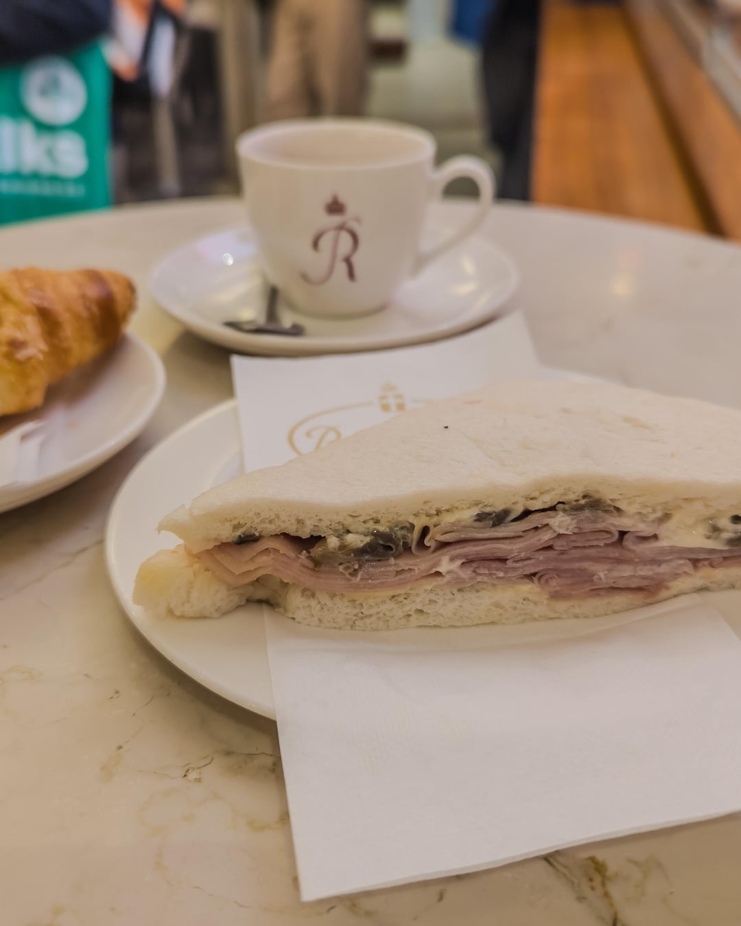 1. Venice is famous for tramezzini (sandwich), so I'm trying different places. This one is a classic ham and mushrooms