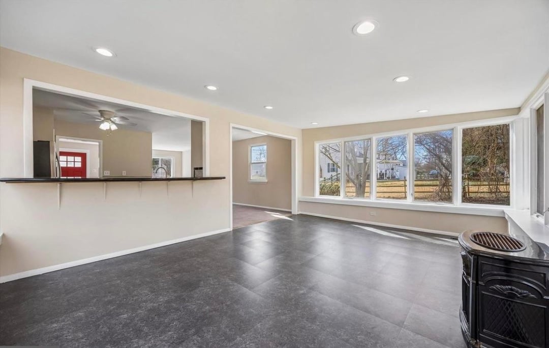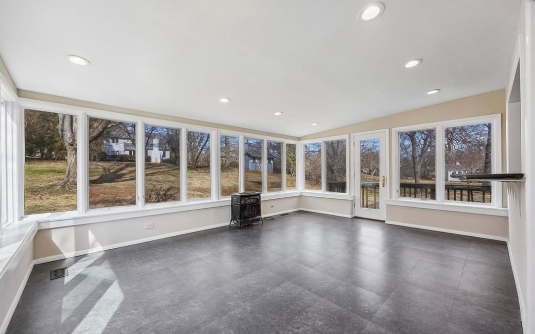 just bought a new house – has a sun room in the back with all these windows – we are changing floors to hardwood and painting the walls a moody green or blue.