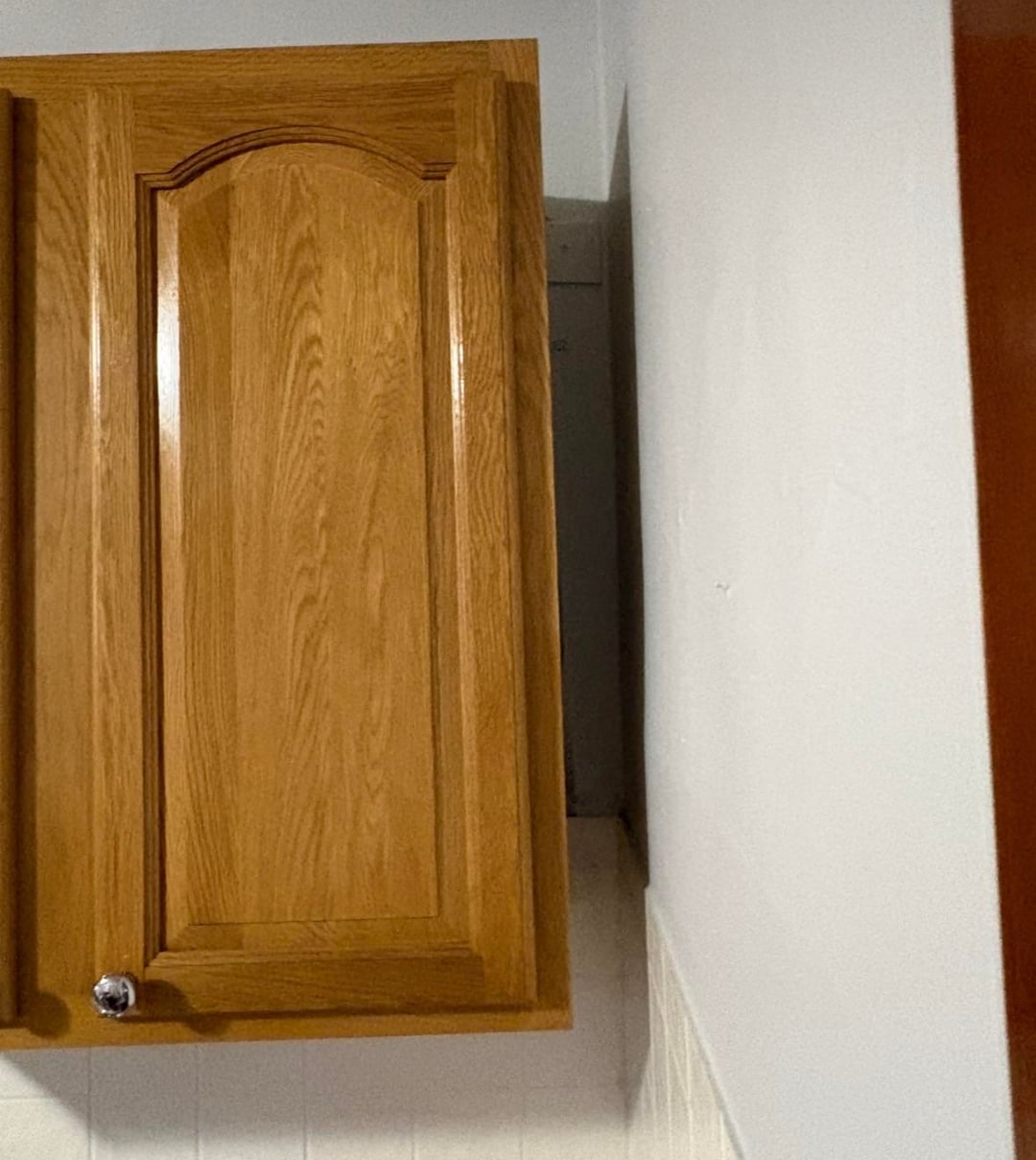 Have you measured the space between the cabinet and the wall? It’s hard to tell there’s room for anything there. Actually same question for the area available around your fridge though at a glance it seems to at least be enough room to keep your broom/mop hidden between the fridge & wall.
