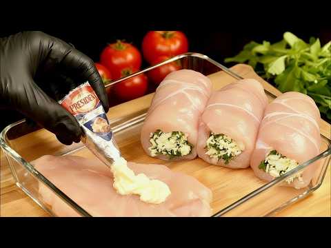 A culinary masterpiece – French chicken rolls with melted cheese. This dish combines the tenderness of chicken, the creaminess of melted cheese, and the piquant aroma of French spices. Each roll consists of a thinly sliced piece of chicken breast delicately wrapped around a delicious filling of melted cheese.
