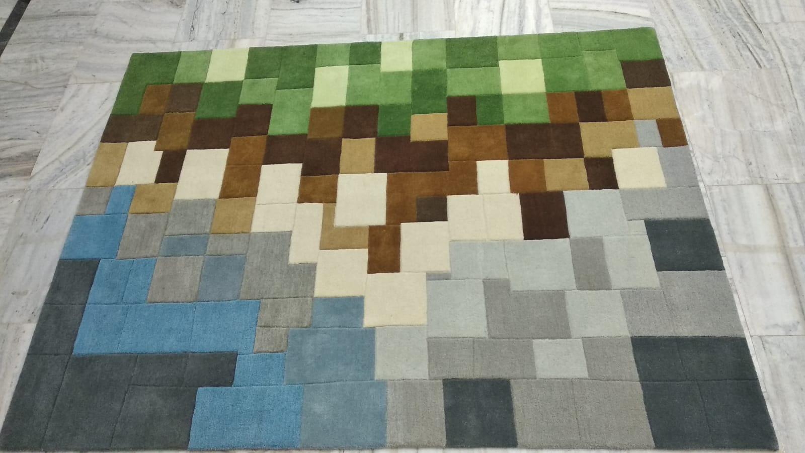 The design is inspired by a pixelated landscape — a mix of earthy browns, soft neutrals, greens, and muted blues to create a natural, almost terrain-like feel. I tried to keep the blocks slightly imperfect to give it a more organic, handcrafted character rather than a perfect grid.